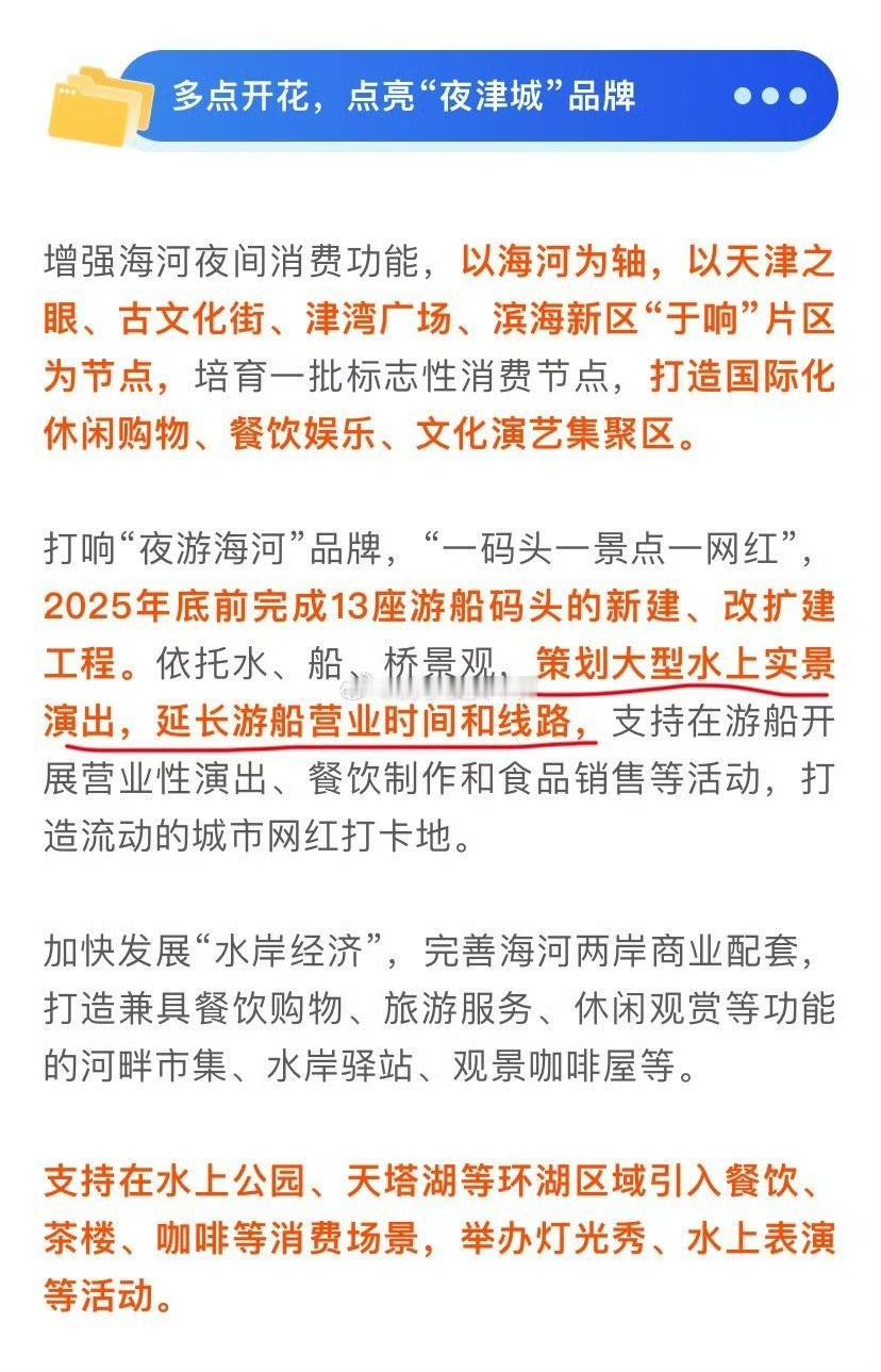 天津真该好好打造下海河两岸风景,让它成为天津的外滩和旅游ip,类似西安大唐不夜城,成都天府大道,重庆解放碑洪崖洞! 市区有大河穿过的城市,基本都成为这个城市的最靓丽对外名片,北京目前就没有,市区就一条小河完全不像上海黄浦江,重庆嘉陵江,南京秦淮河,武汉长江等城市,尤其是重庆两江交汇处景色很壮观,上海外滩遥望陆家嘴。天津的海河区位也足够可以成为媲美外滩的存在,但是因为一直没有好好规划和宣传,名气不大! 我上次去天津,沿着海河从天津之眼一直走到陈塘庄,沿线步道建设的很长很美,非常适合散步或者健身,但是沿线的旅游项目和商业景区实在少的可怜,除了看到老大爷跳水,还有个玩滑板的,就没别的了,好不容易之前火了个跳水的,后来也被解散了。真可惜。 天津目前缺少一个爆火的点,比如西安大唐ip持续爆火,还有重庆洪崖洞,每次节假日人山人海,我觉得可以沿着海河弄一个水上运动ip,打造爱好水上运动的天堂,吸引更多人在海河两岸旅游置业!你们觉得如何?