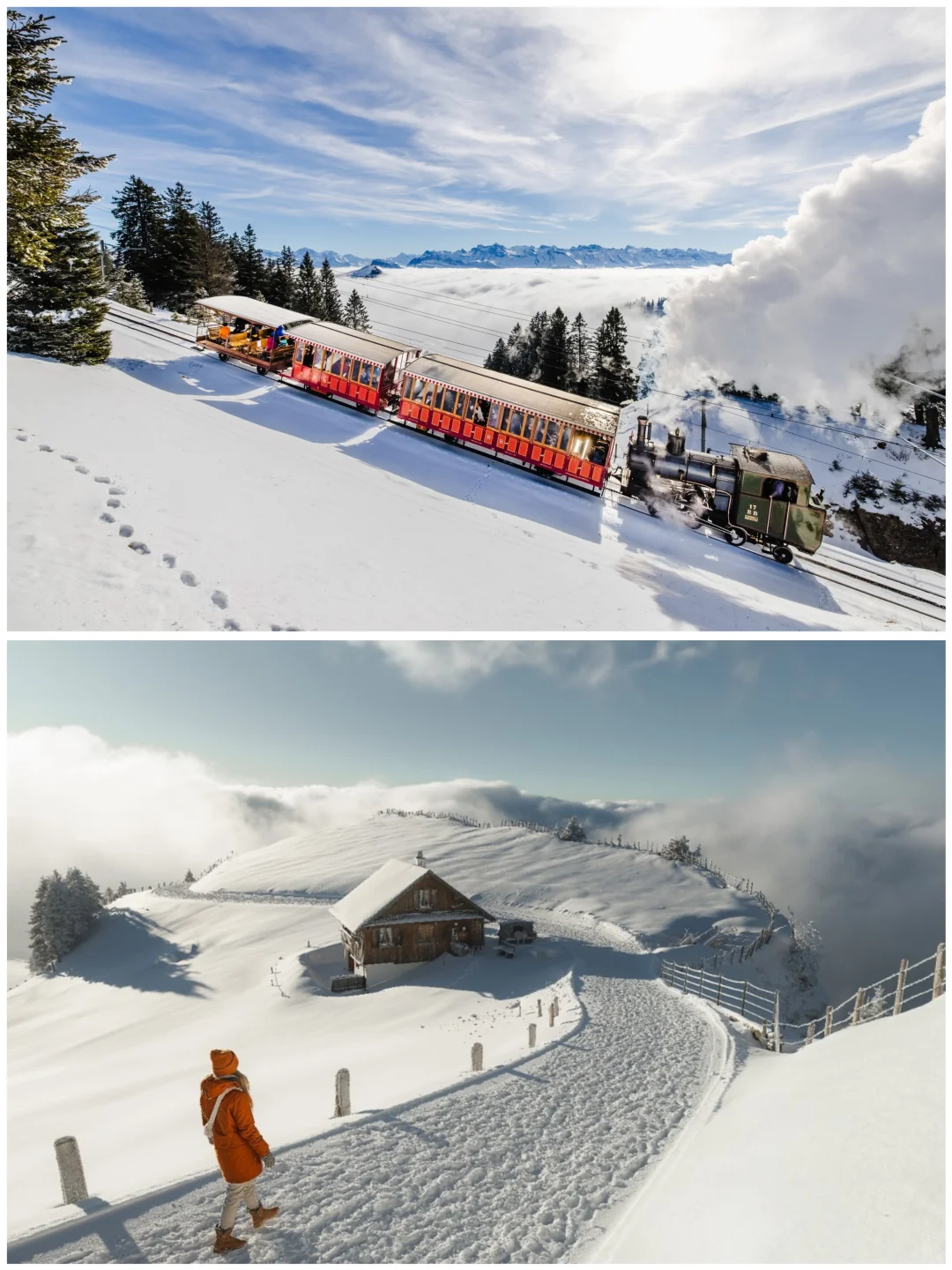卢塞恩城内随处可见中世纪的教堂、塔楼,文艺复兴时期的宫廷,百年老店,还有长街古巷。雪景下,显得更为梦幻和童话了!这段行程从Arosa离开后,搭乘游船到瑞吉山下的维茨瑙,入住酒店!并游玩老城和卢塞恩湖。次日,搭乘欧洲第一条登山齿轨列车游玩瑞吉山!乘坐雪地火车穿梭在山川湖泊,峡谷雪森里,是瑞士的蕞为经典浪漫的玩法!
