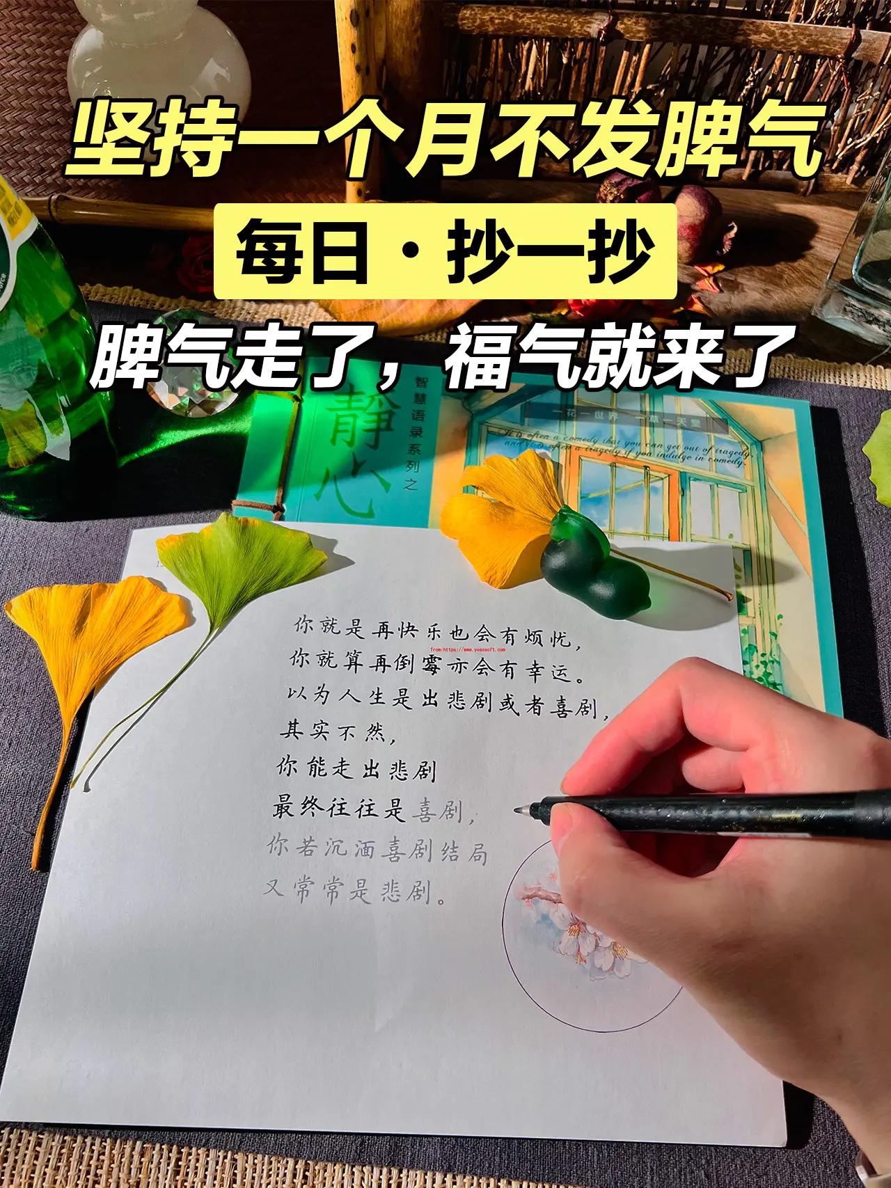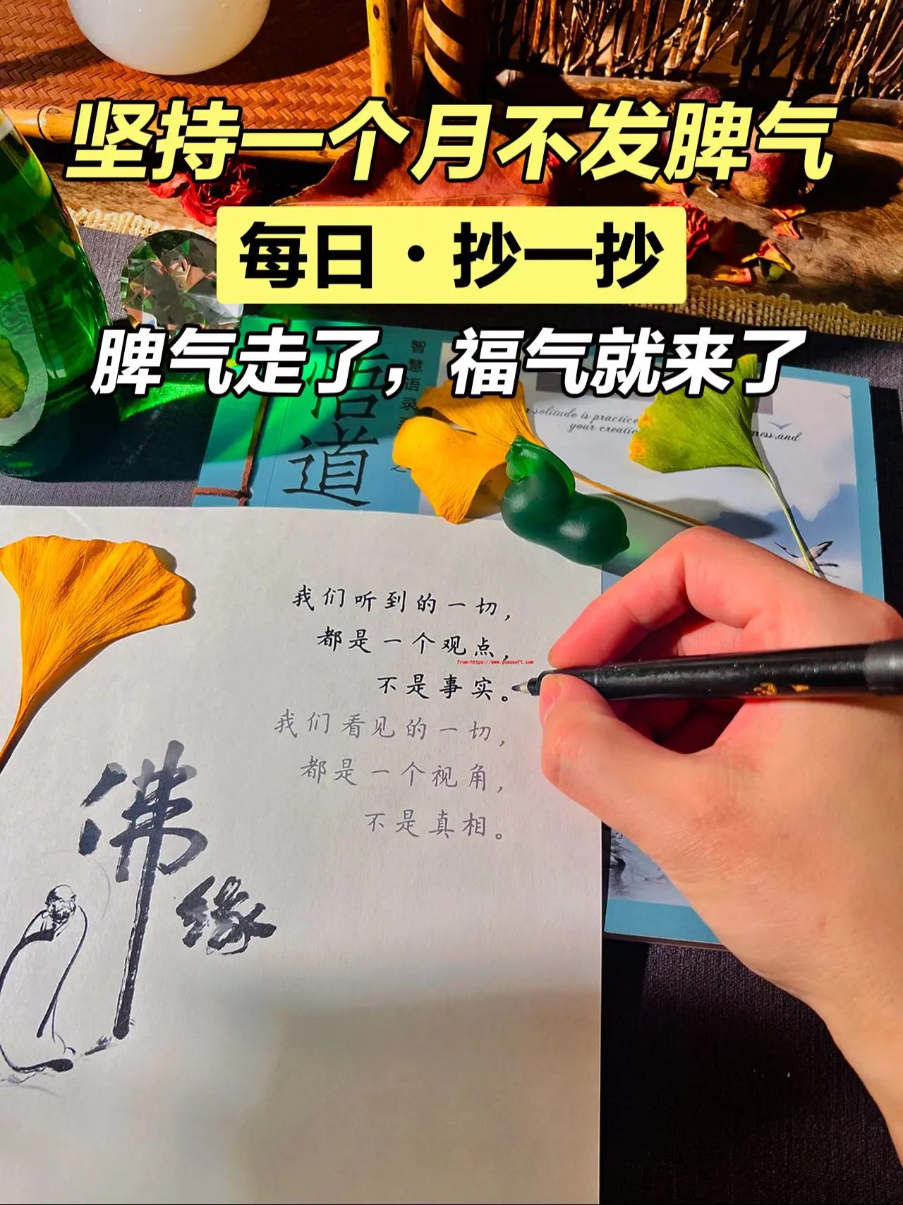 别让脾气挡住了你的福气!做一个佛系女子,越安静越简单,心情不好的时候,不妨试着抄一抄写一写,让心静下来,心静了,福气就来了,心有多静,福有多深,放下的越多,得到就越多。