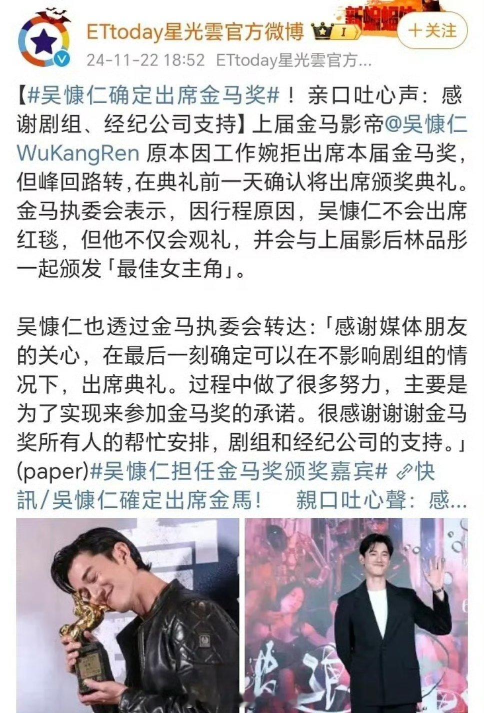 刘大锤说孙俪没罢演 孙俪怎么可能罢演,而且吴慷仁说不去金马,结果还是继续回金马了哦!!