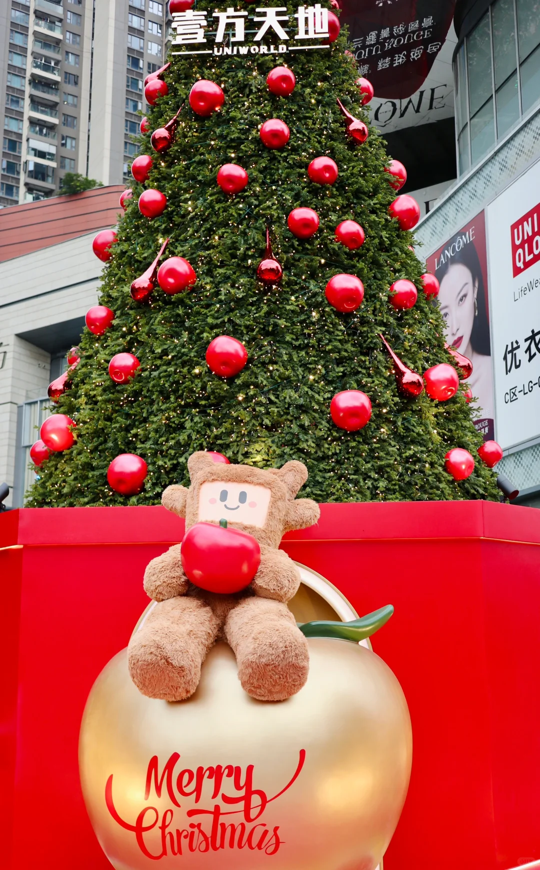 11月深圳的圣诞氛围都卷起来了‼️ 今天和朋友逛壹方天地发现了巨大的红色圣诞树🎄 艳丽的颜色敲出片 拍照点位请查收👇 🌟抱苹果🍎的可爱小鹿🦌 🌟粉粉嫩嫩的小熊🧸忍不住给个大抱抱 🌟圣诞经典蝴蝶结🎁 照片轻轻松松👍爆朋友圈✌️ 📍深圳市龙华壹方天地