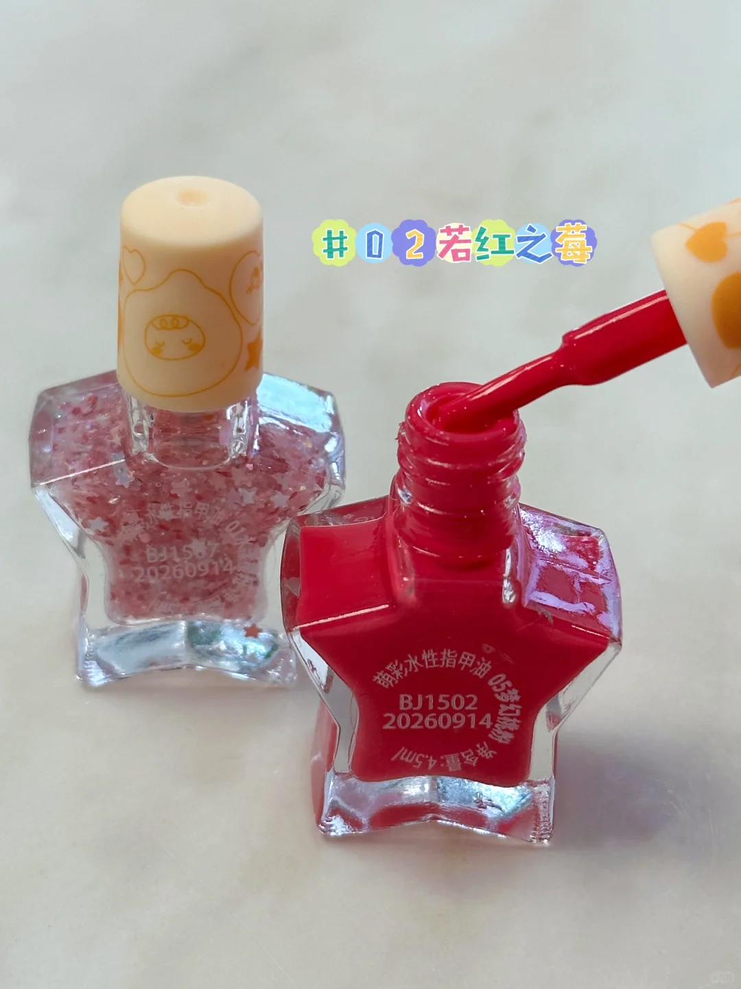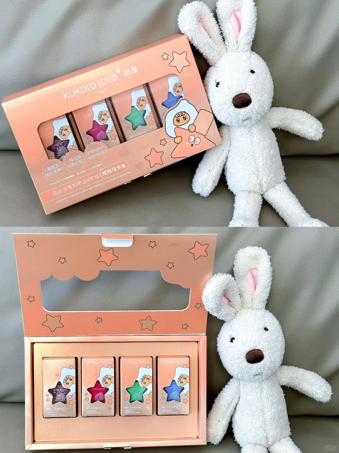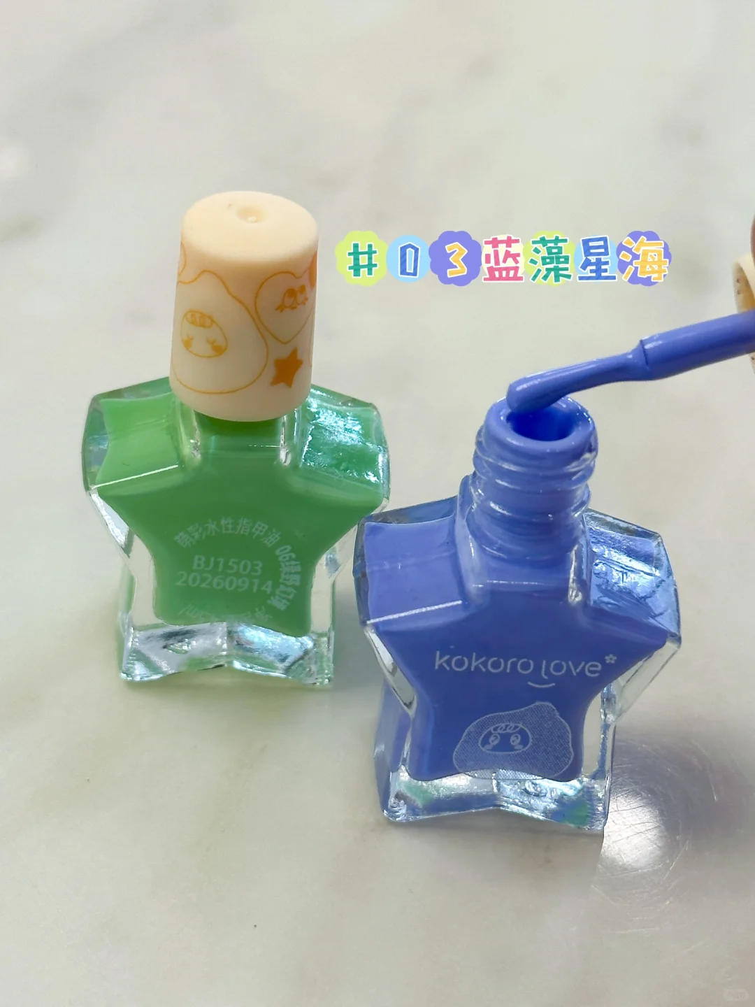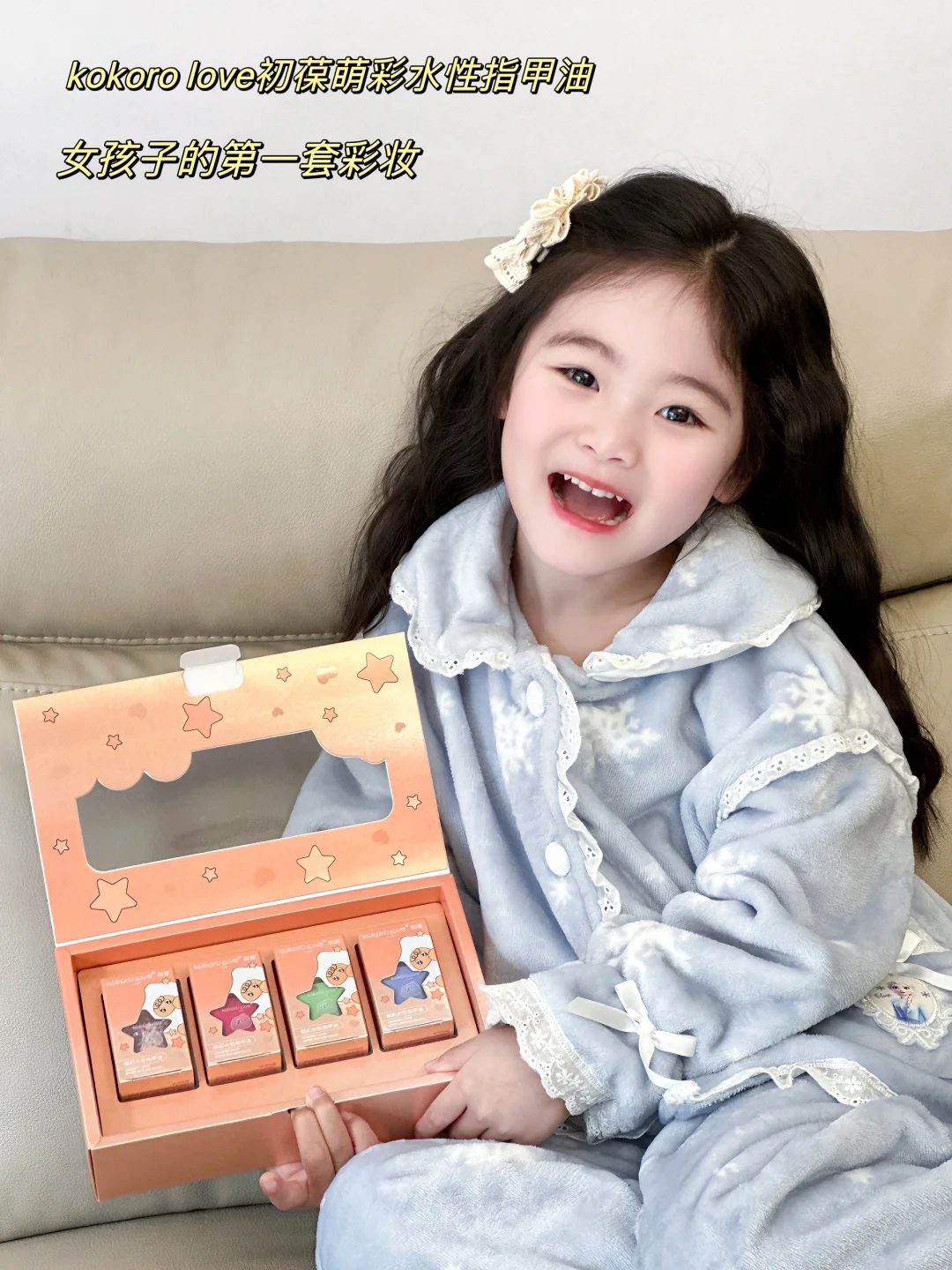 漂亮的衣服当然不缺啦~安全又好看的指甲油也当然要给女儿安排上~ 女儿每次看我做美甲💅都要哭闹着也要涂 我又怕不安全所以都没买 后来朋友推荐了kokorolove 初葆的这款儿童萌彩水性指甲油,有小金盾儿童化妆品标志 成分也没有甲醛甲苯这些有害物质,用的是 60%+的水性配方,天然树脂的亲肤原料和小麦角蛋白 这些护甲成分,给孩子用无毒很安心 味道不刺鼻,淡淡的香味,成膜又快,可撕拉好撕卸 不伤指甲面 颜色又好看 想换颜色就换颜色 女儿可太喜欢太开心啦🥳