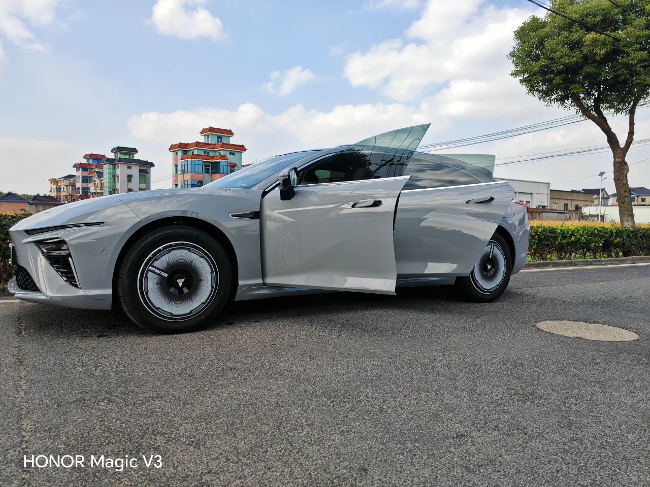 哪吒S 猎装 灰色车身搭配看起来真舒服 哪吒S 哪吒s猎装 哪吒S猎装 哪吒汽车 汽车改色贴膜 轮毂盖 特斯拉改色 特斯拉model3 特斯拉modely 特斯拉改装