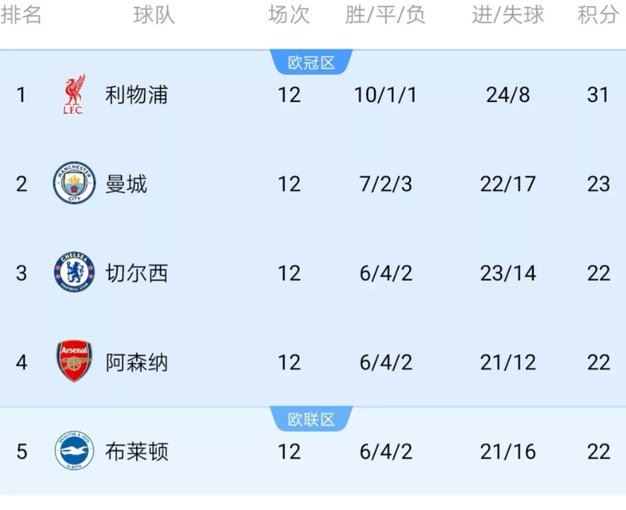 万万没想到,五大联赛积分榜领先优势最大的是英超,随着曼城的暂时沉沦和阿森纳提前掉链子,利物浦领先优势扩大至8分,瓜迪奥拉即使后半程再能追,恐怕也望尘莫及了。