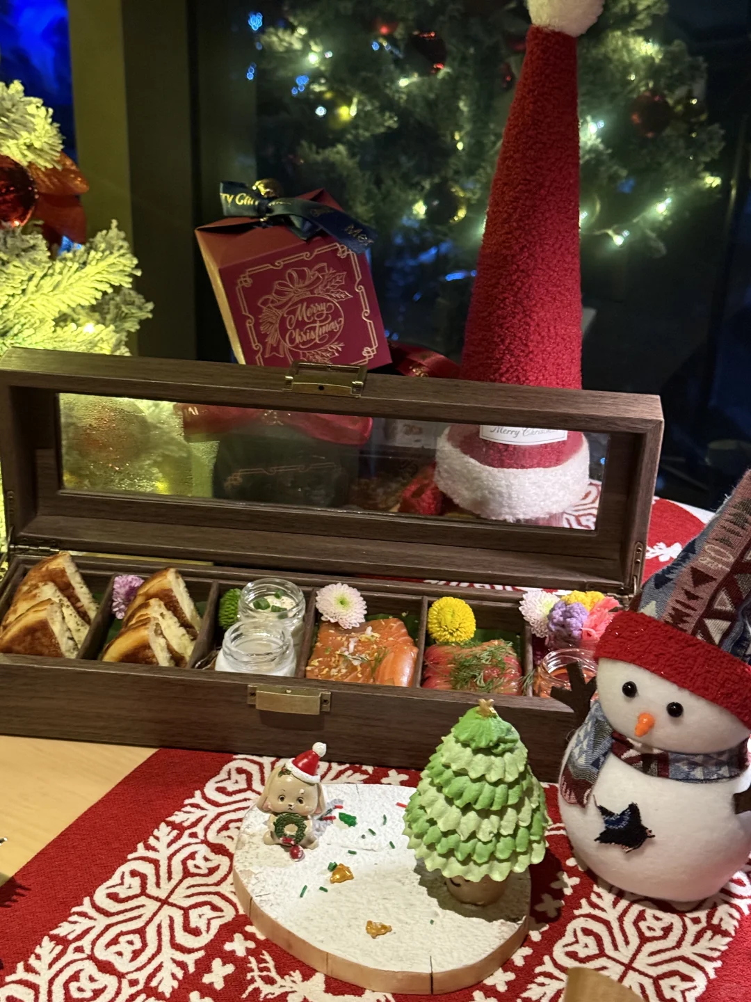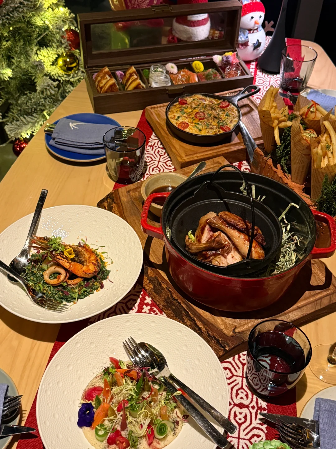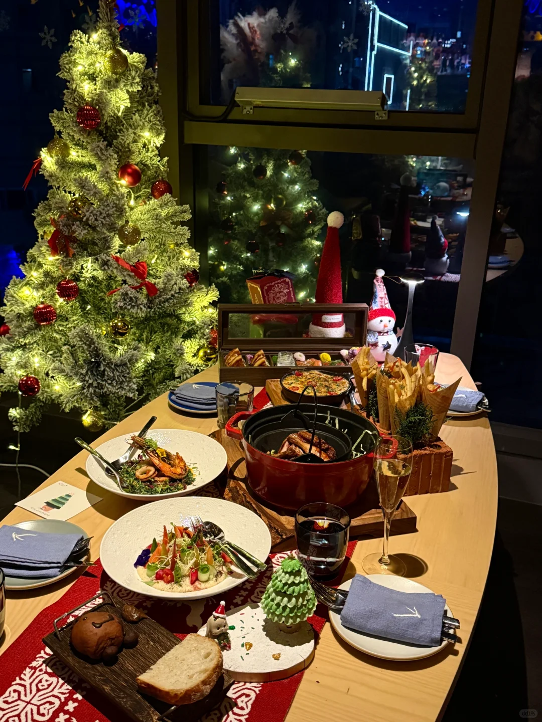 不得不说 杭州还是太超前了 圣诞氛围越来越浓厚🦌 已经布置了雪景+圣诞树🎄 📷敲出片嘟 一边感受圣诞一边吃个漂亮饭 不愧是王嘉尔也爱来的餐厅🍴