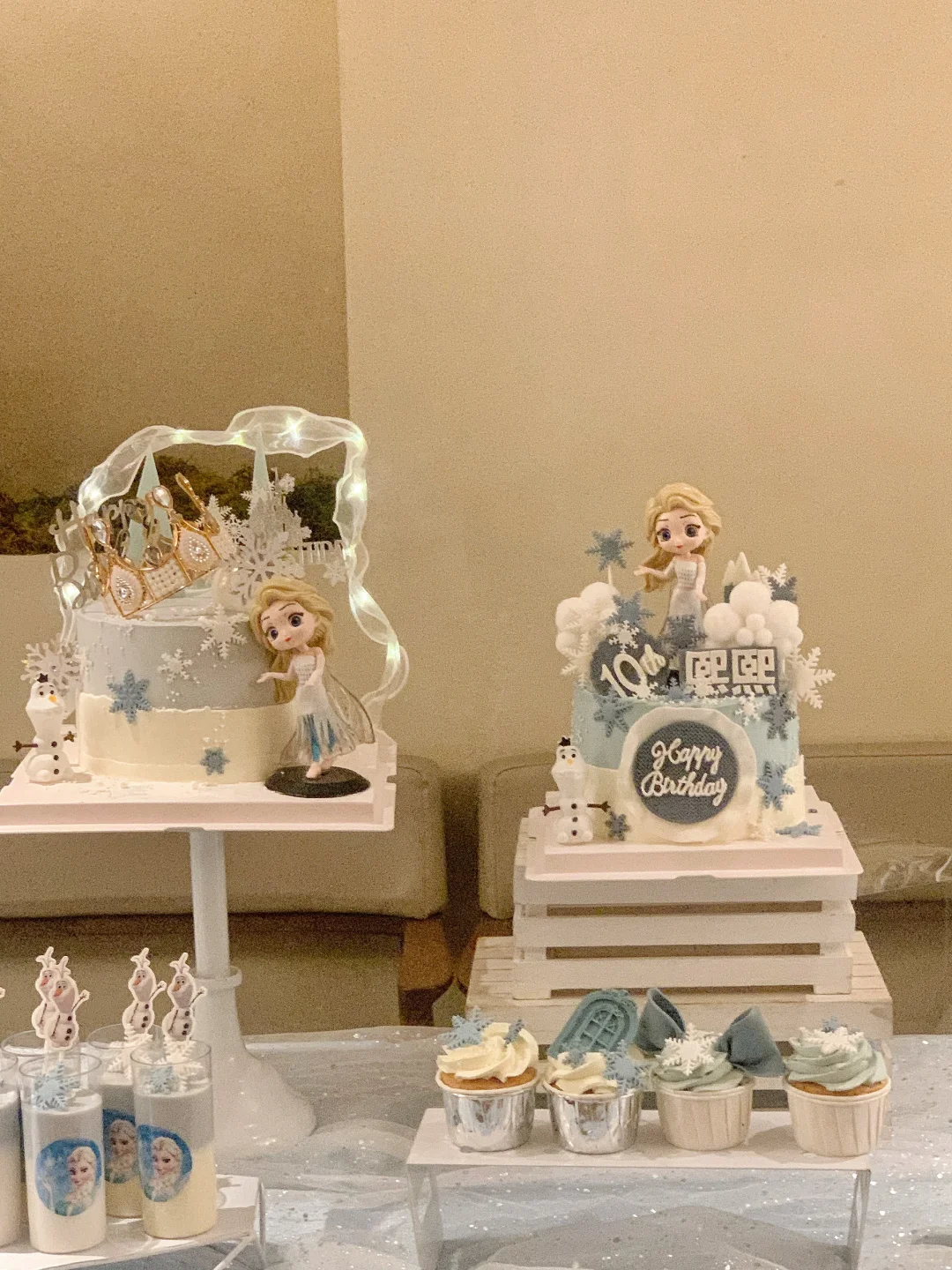 艾莎公主蛋糕 冰雪奇缘艾莎 生日甜品台 甜品台 纯动物奶油蛋糕