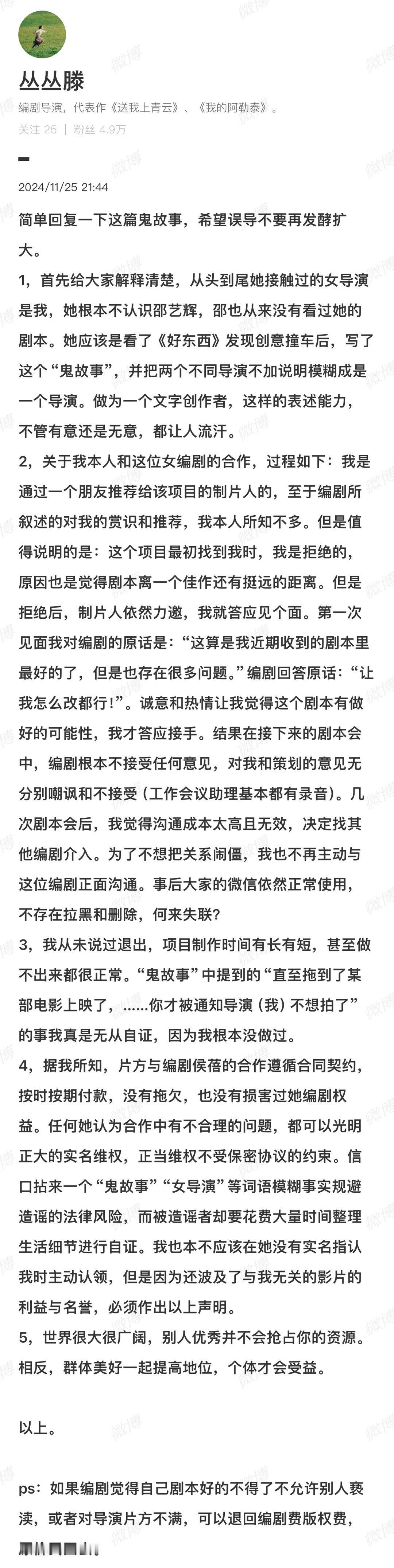 上午编剧映射的“鬼故事”水落石出了,是《我的阿勒泰》导演滕丛丛。