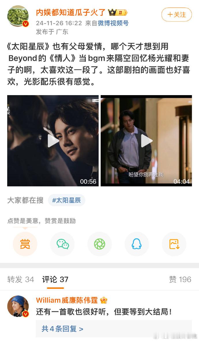 陈伟霆 在剧粉评论区冲浪 《太阳星辰》的热播,不仅让我们看到了陈伟霆的精湛演技,更让我们在评论区与他有了近距离的互动。陈伟霆在剧粉评论区冲浪的每一个瞬间,都仿佛是在与我们分享他的喜悦与感悟。