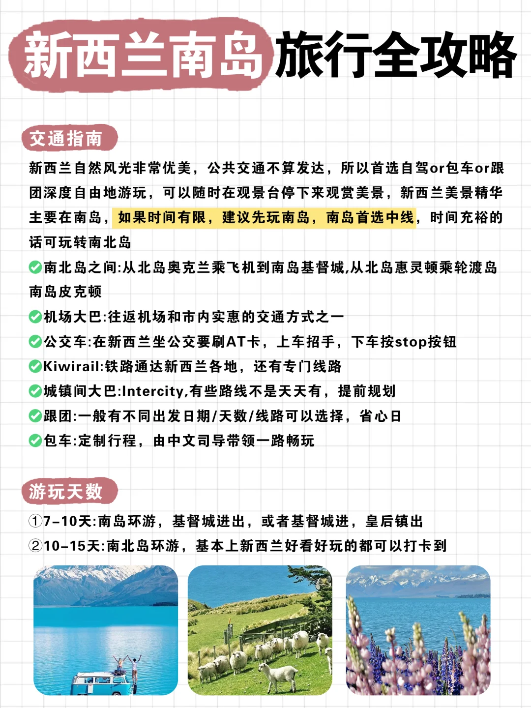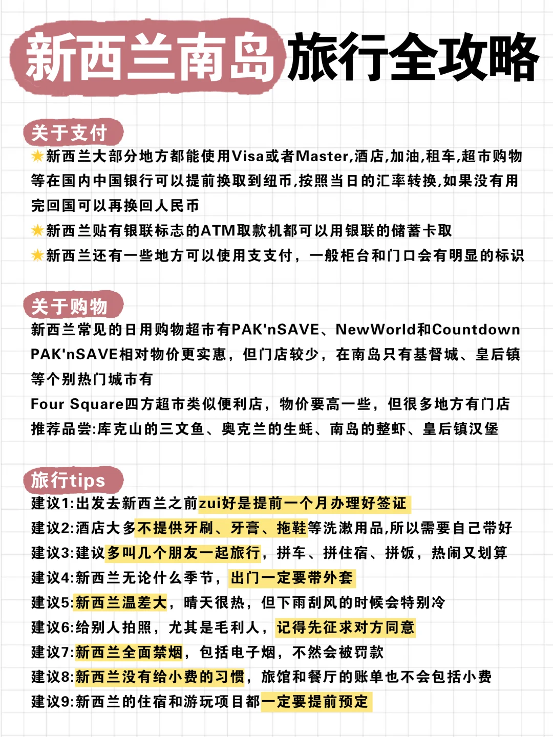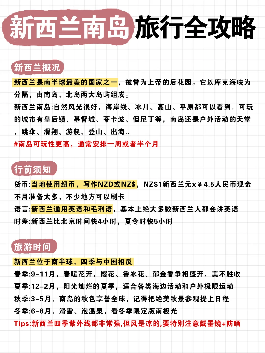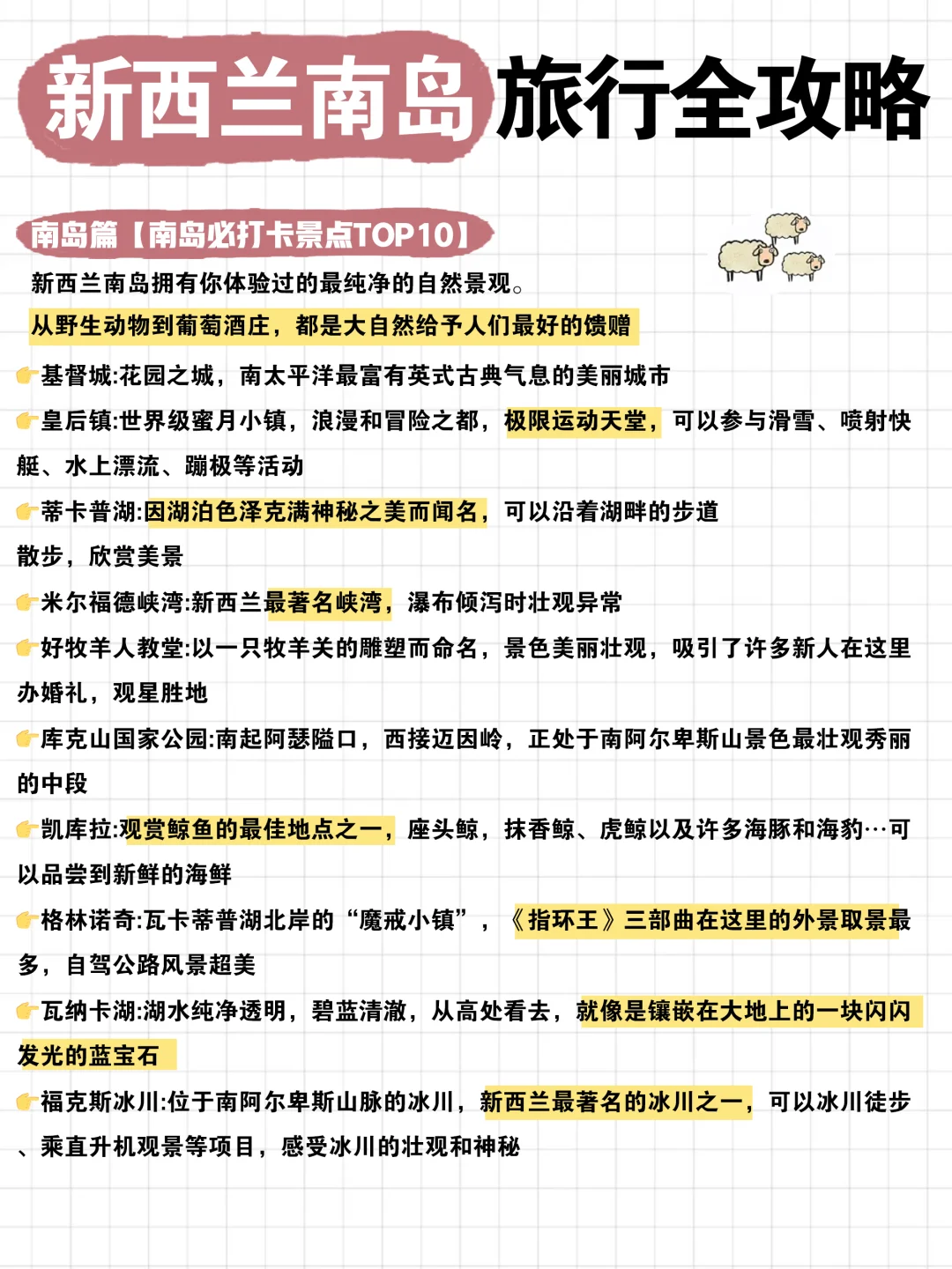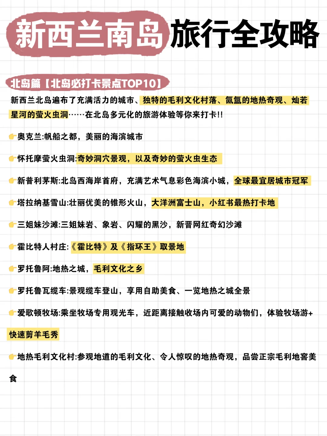 宝贝们,最近超多小伙伴私信问我👀新西兰🇳🇿的旅行攻略,是的,北岛南岛都是绝佳选择!尤其是南岛,自然风光美到爆🌲🏞,特别适合自驾党和自然爱好者🚗。