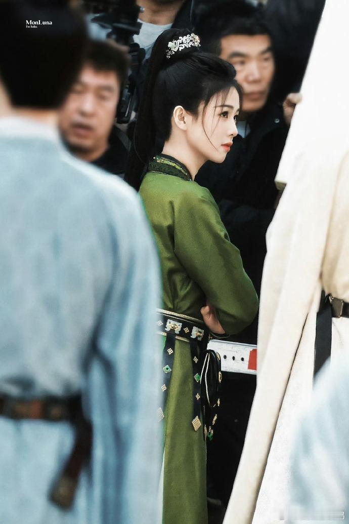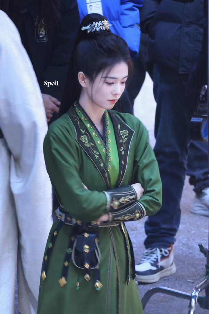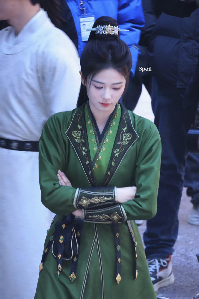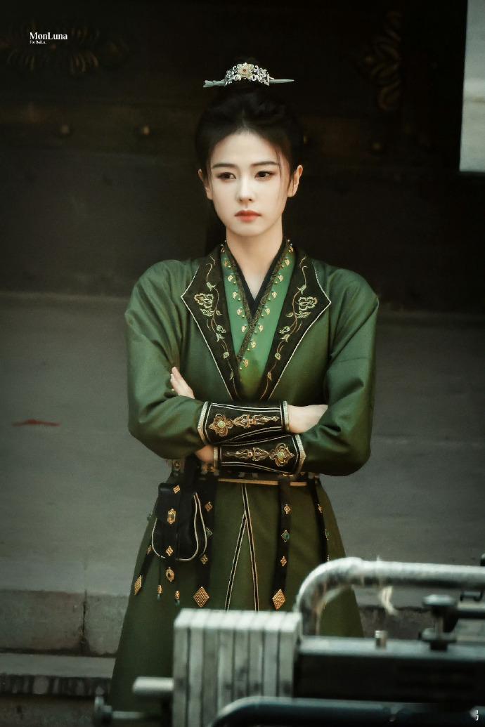 白鹿《唐宫奇案》今日路透 这套绿衣造型也好帅