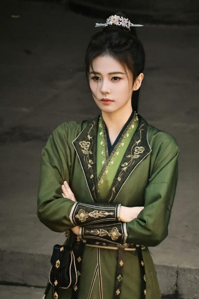 白鹿《唐宫奇案》今日路透这套绿衣造型也好帅