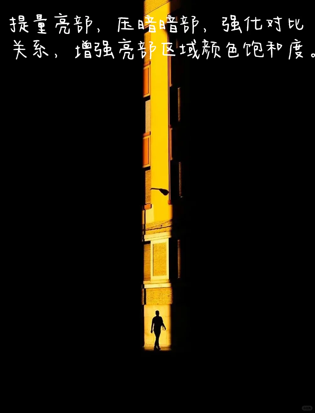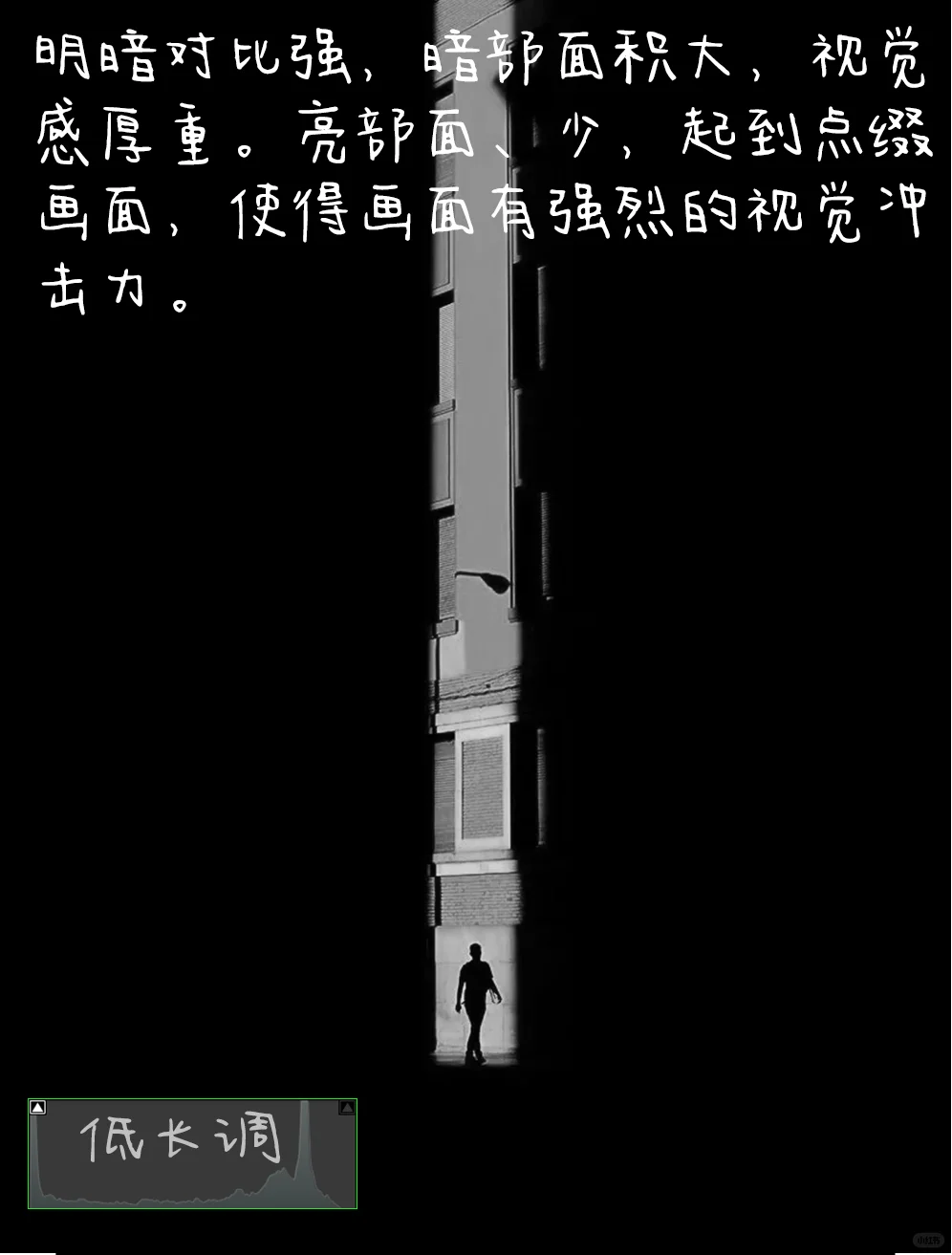 [三R].明暗对比强,暗部面积大,视觉感厚重。亮部面、少,起到点缀画面,使得画面有强烈的视觉冲击力。