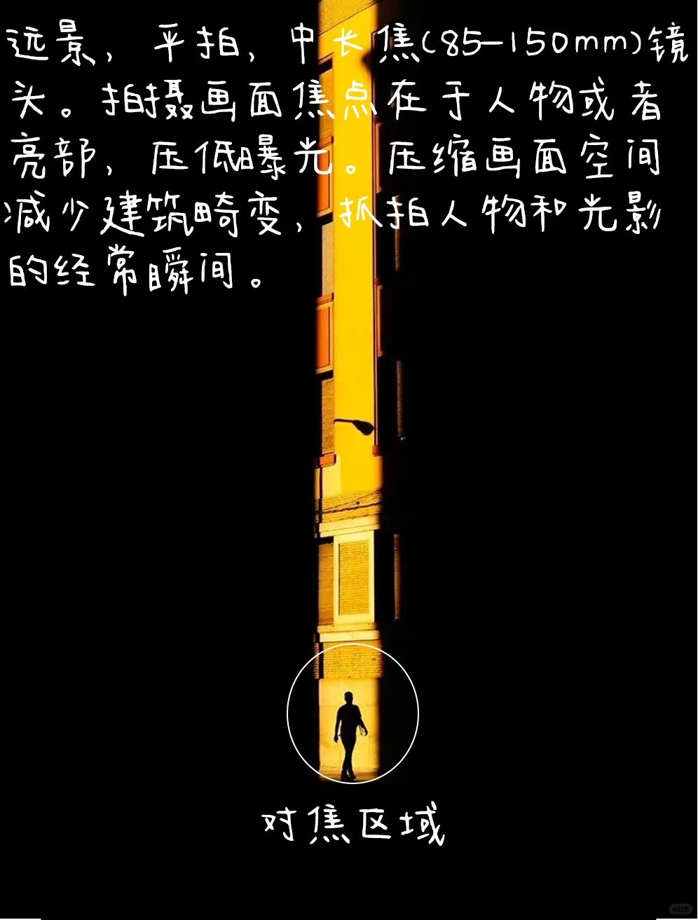 [五R].远景,平拍,中长焦(85-150mm)镜头。拍摄画面焦点在于人物或者亮部,压低曝光。压缩画面空间减少建筑畸变,抓拍人物和光影的经常瞬间。