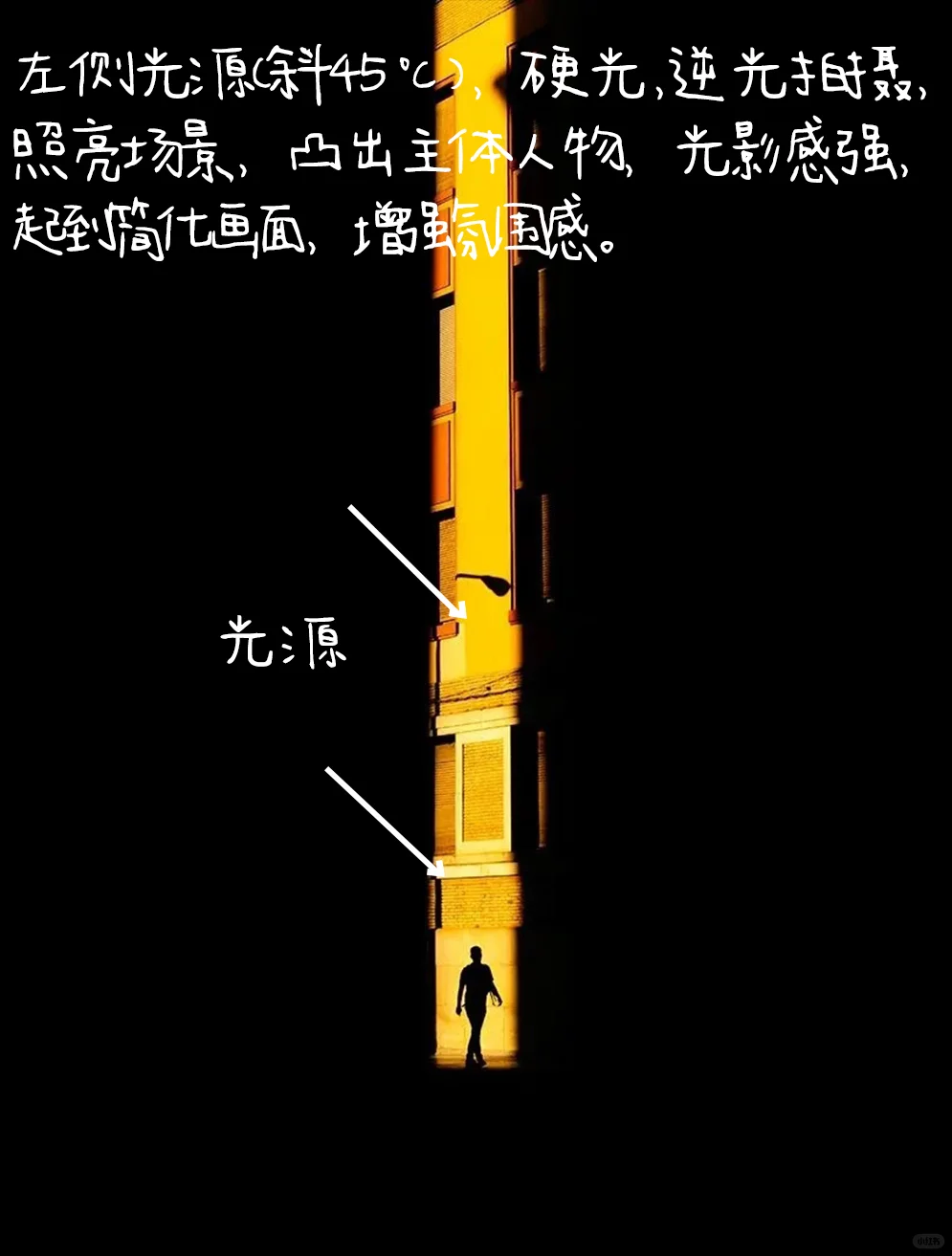 [二R].左侧光源(斜45℃),硬光,逆光拍摄,照亮场景,凸出主体人物,光影感强,起到简化画面,增强氛围感。