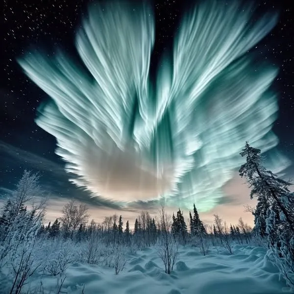 这幅梦幻的画面令人屏息,蓝色的极光与繁星交织,形成了一幅美丽的宇宙画卷。冷冽的空气中夹杂着兴奋的气息,周围的雪地在光辉的映衬下闪烁着微光,宛如被撒上了无数颗钻石。每一次闪烁,都是对生命与自然的深刻礼赞。