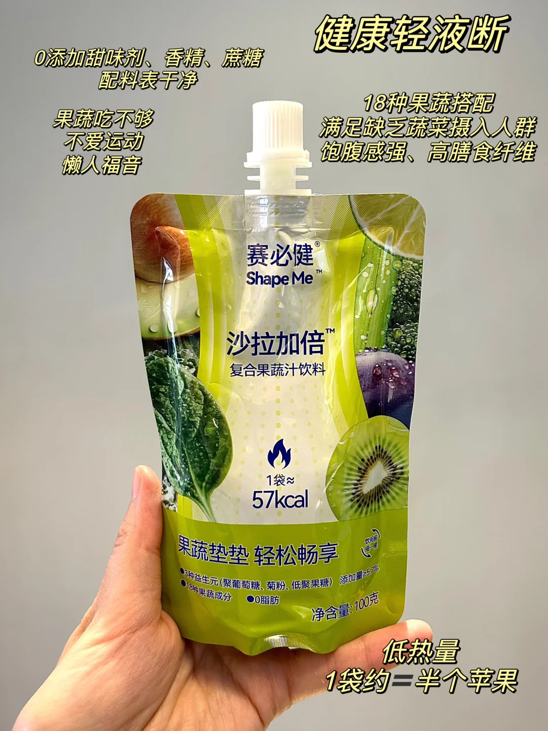 如果是不爱吃青菜🥬的姐妹们,你的自律餐更要注意营养均衡!超模同款【赛必健沙拉加倍】对不爱吃蔬菜的可太友好啦!是生科大牛金赛药业旗下的品牌,大牌很安心,热量超低!🥝🥒🥕🥦🫑🍎果蔬多到18种!6.5g高膳食纤维!