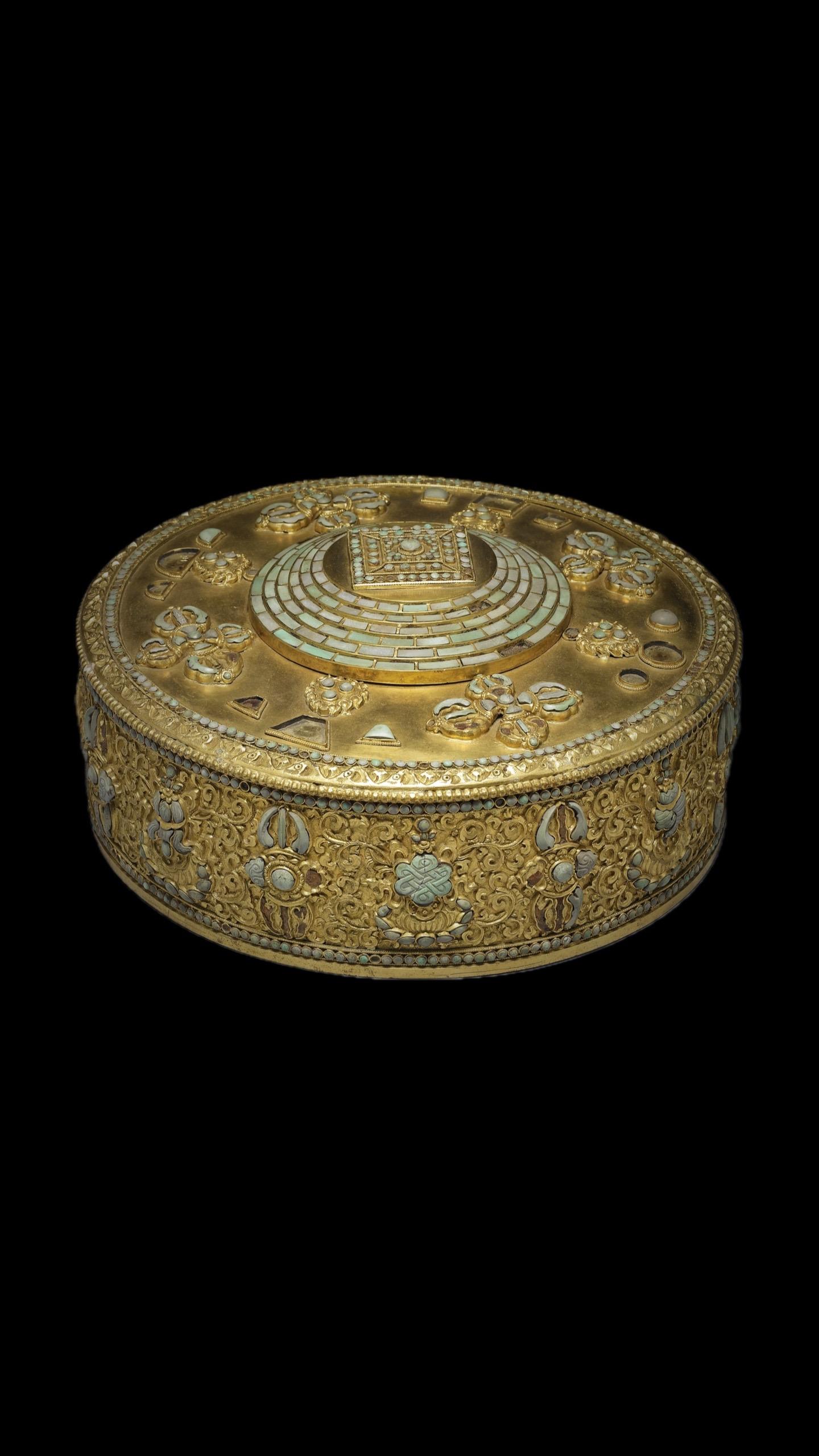 坛面外围饰四件镶嵌松石的十字金刚杵纹