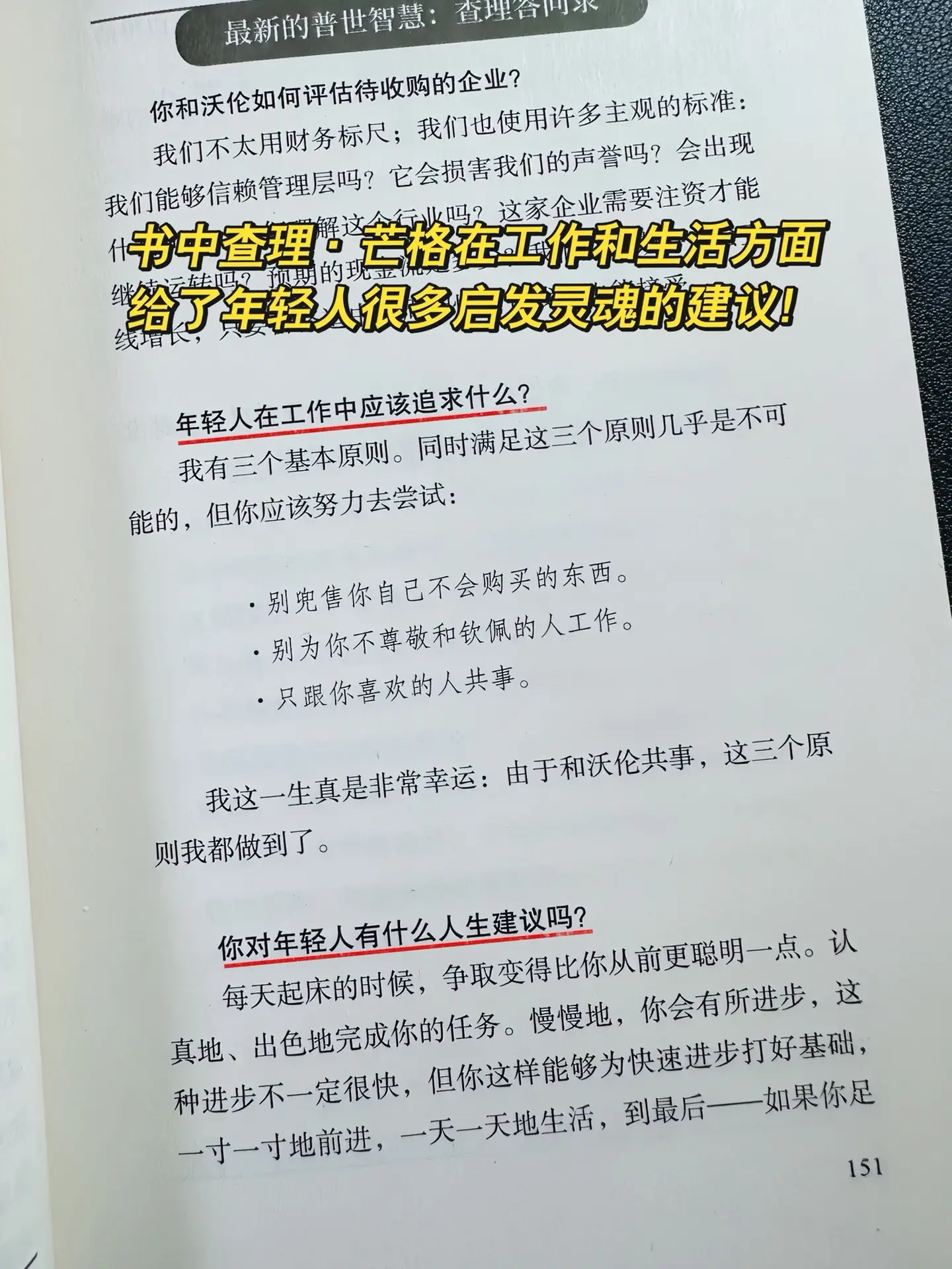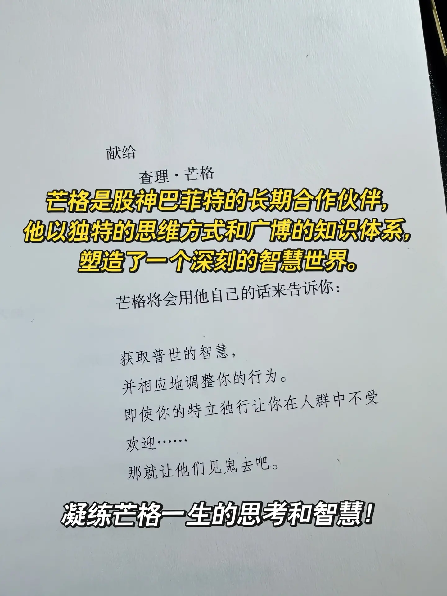 🔥如果我能在30岁读到这本书就好了!刷新认知与格局,拉开和同龄人的差距,少走弯路。 📚凝练查理·芒格一生的思考和智慧,不愧是股神巴菲特的人生导师,芒格的智慧和思想正是我们今天所需要的,教你如何长期不断地投资自己,无论是工作还是生活中,最好的价值投资就是投资自己,掌握芒格的思维方式,让你的人生效能更高!
