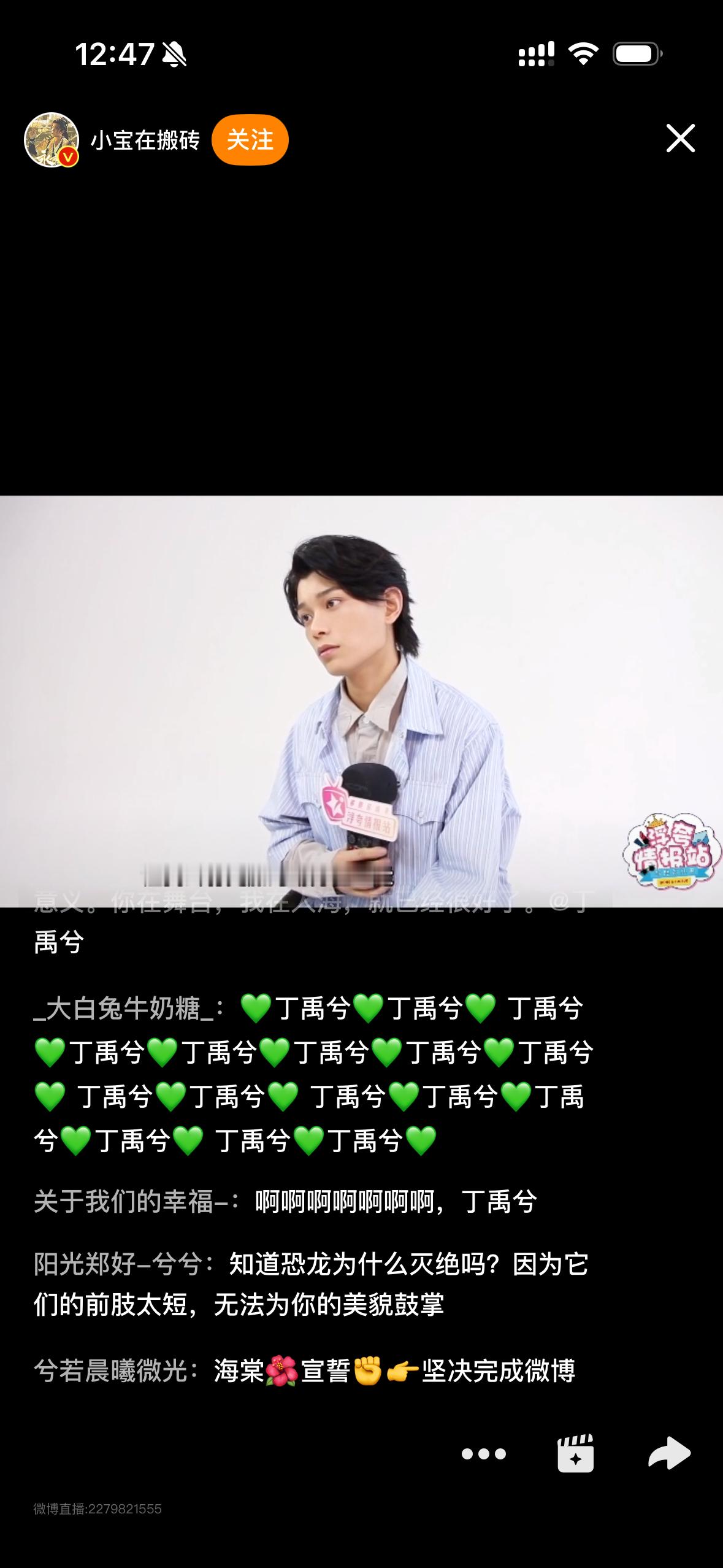 【丁禹兮就是内娱活人!!谁爱他谁赚到!】一睁眼!啊啊啊!我们丁这是看我采访了!四舍五入同框了!!! 丁禹兮看自己的物料考古直播