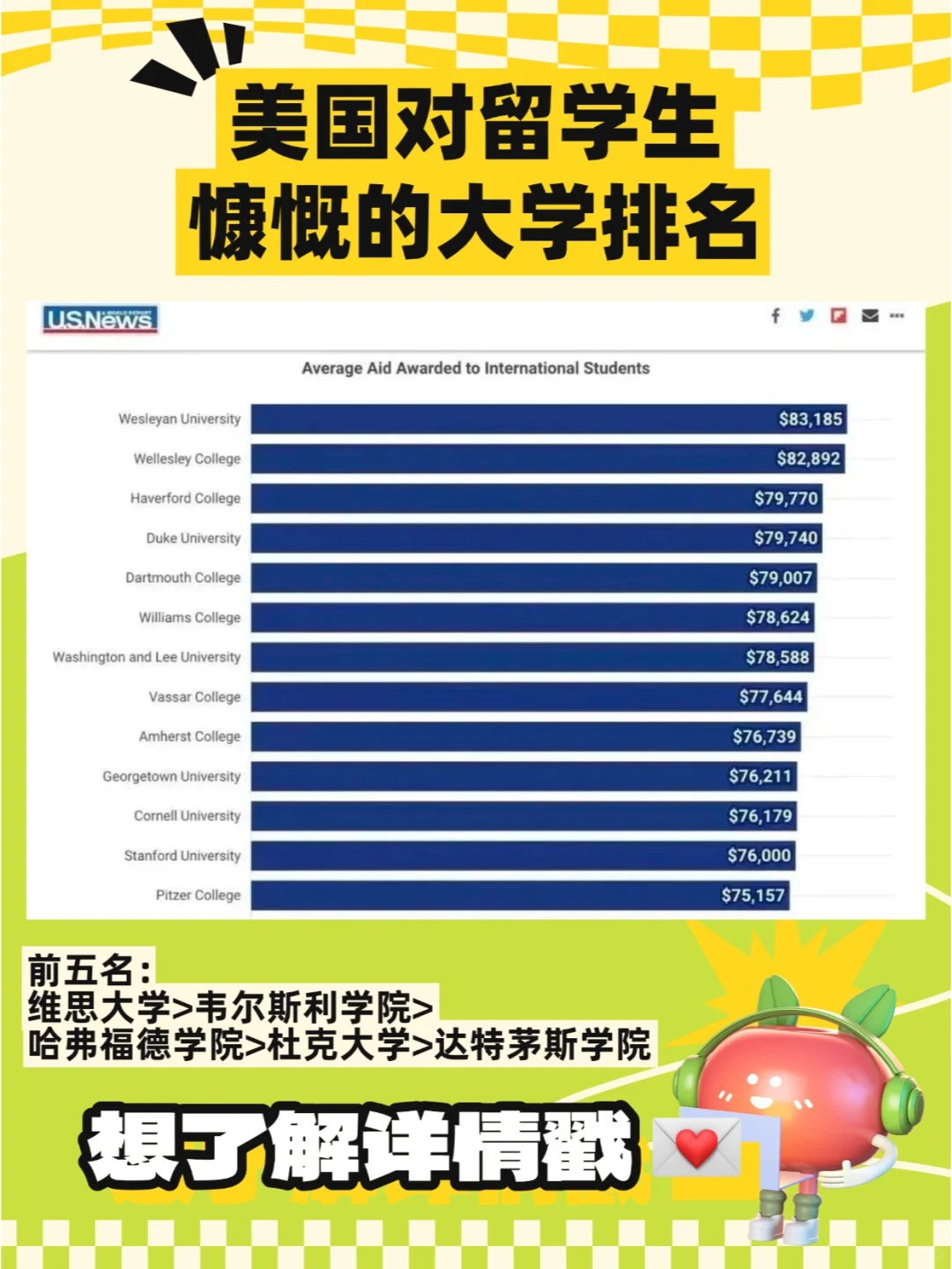 例如🌟范德堡大学为家庭年收入15万美元以下的学生免学费;🌟达特茅斯学院为年收入不到12.5万美元的学生提供学费全免。