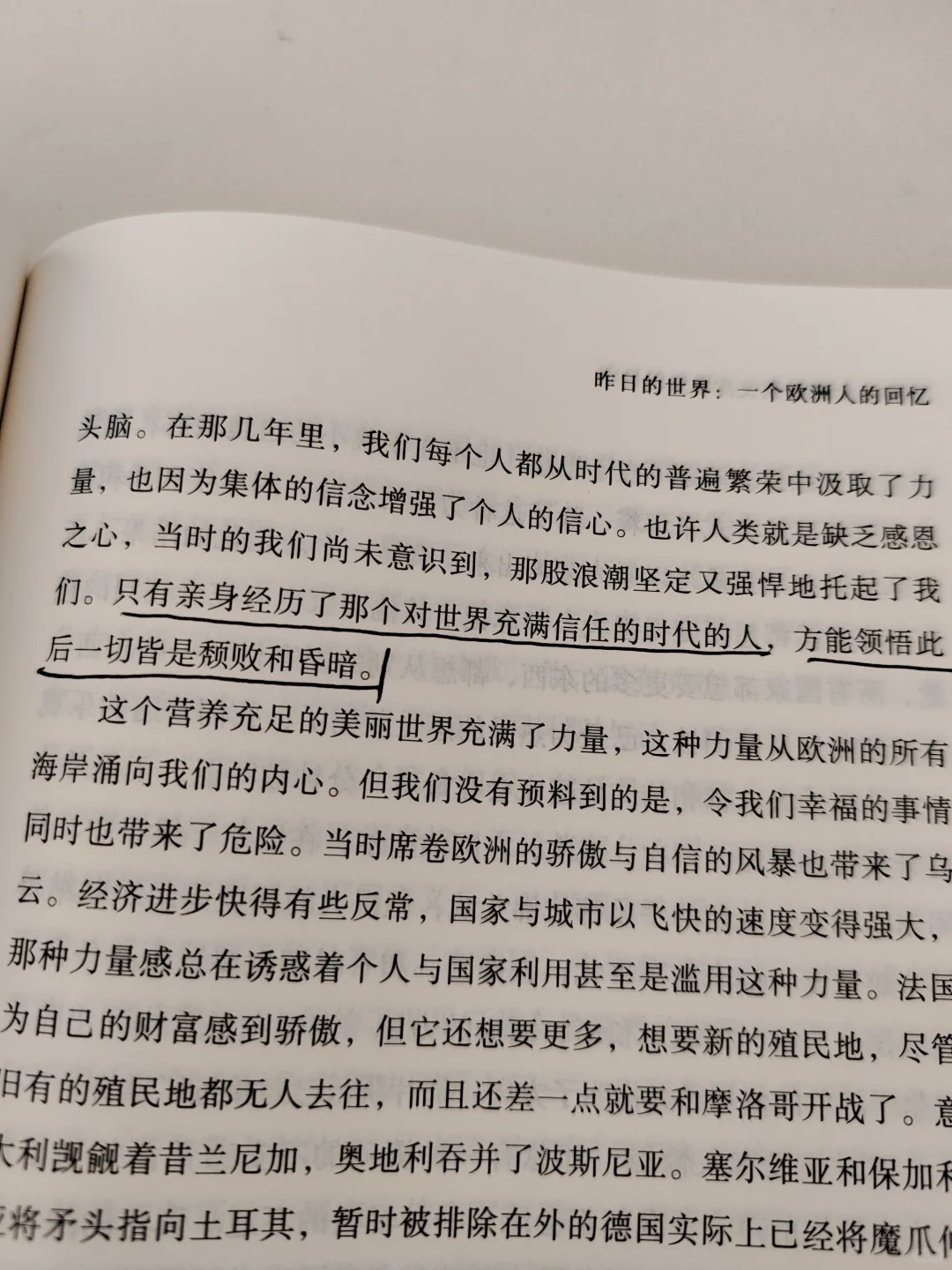 “只有亲身经历了那个对世界充满信任的时代的人,方能领悟此后一切皆是颓败和昏暗!”