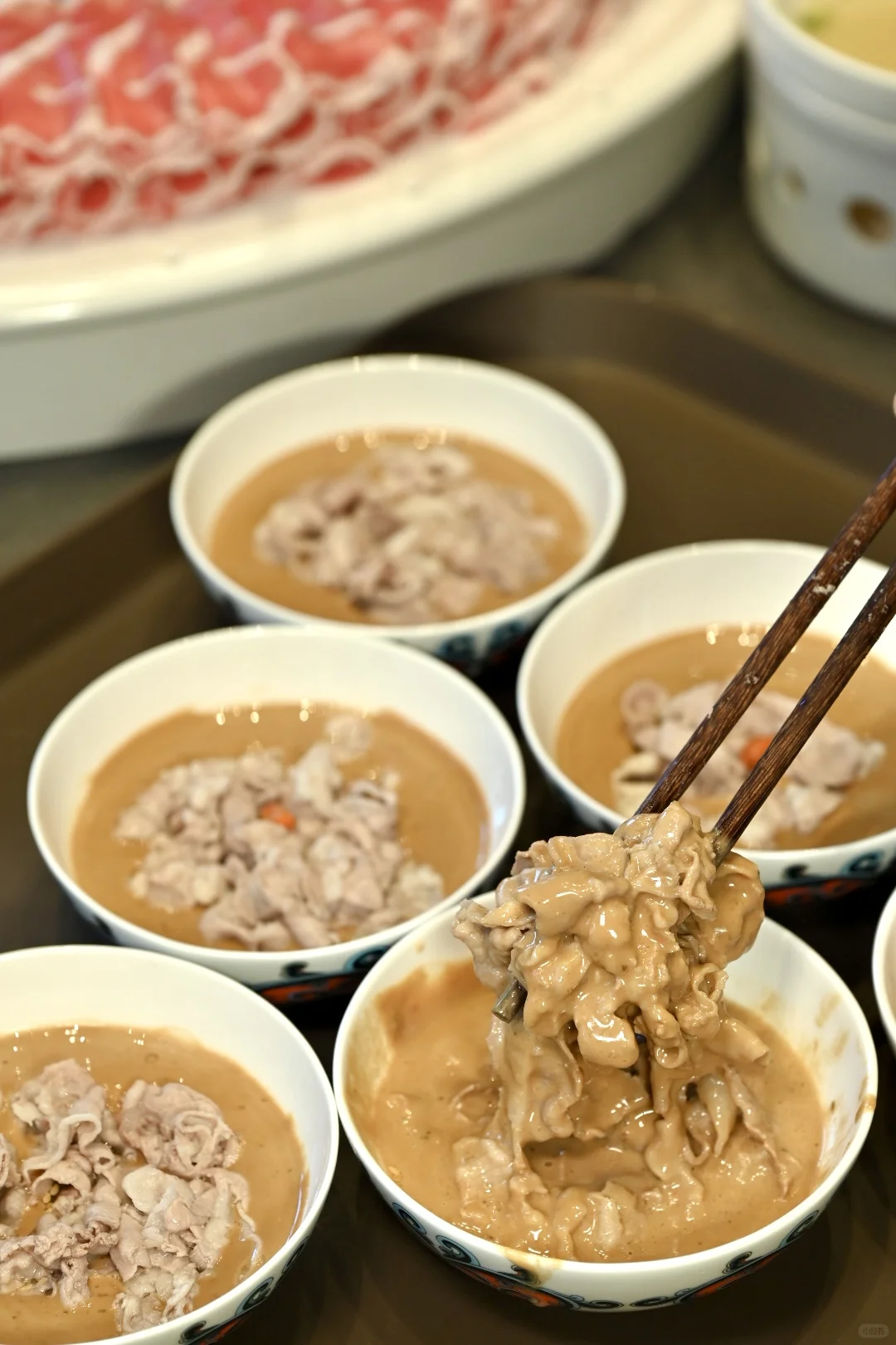 🌟🌟鲜切羔羊肉、谷饲牛腹肋,都不错哈…锡林郭勒的羊肉确实巴适,没膻味,大家都能接受。再蘸上麻酱,好香浓好满足