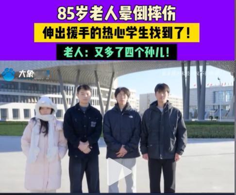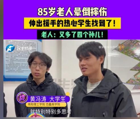 太好了。近日,在河南南阳,一位老人要寻找4个小孩,自称,他当时走在大街上时,突然头晕摔倒了,是4个小孩子把他扶了起来,还带他去旁边的超市买了饮料,买了蛋糕。 当家人知道后,对这4个小孩子的做法,非常的感激,一定要当面感谢。 所以,就希望能找到这4个孩子。 当然,经过几天的寻找,也终于把这4个孩子都找到了。 老人和家属认为,如果没有这4个孩子的帮助,可能他已经不在了。 都说,遇到摔倒的老人不要扶,但还是好人多的。 所以,不管是哪个老人摔倒,我们都应该扶起来,这是弘扬我们的真善美。 这是一种正能量,应该得到大力的宣传才对。