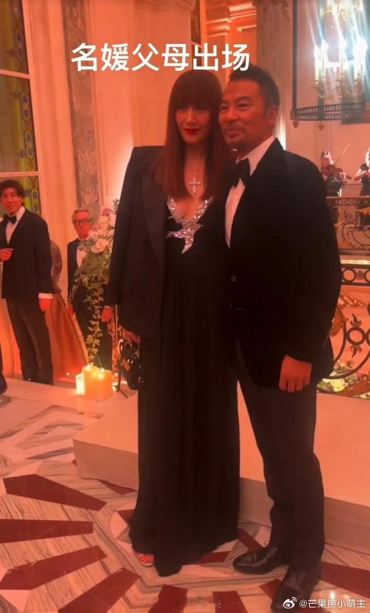 张艺谋一家参加巴黎名媛舞会 张艺谋蹲着给妻子拍照 张导好宠妻,陈婷好有气质