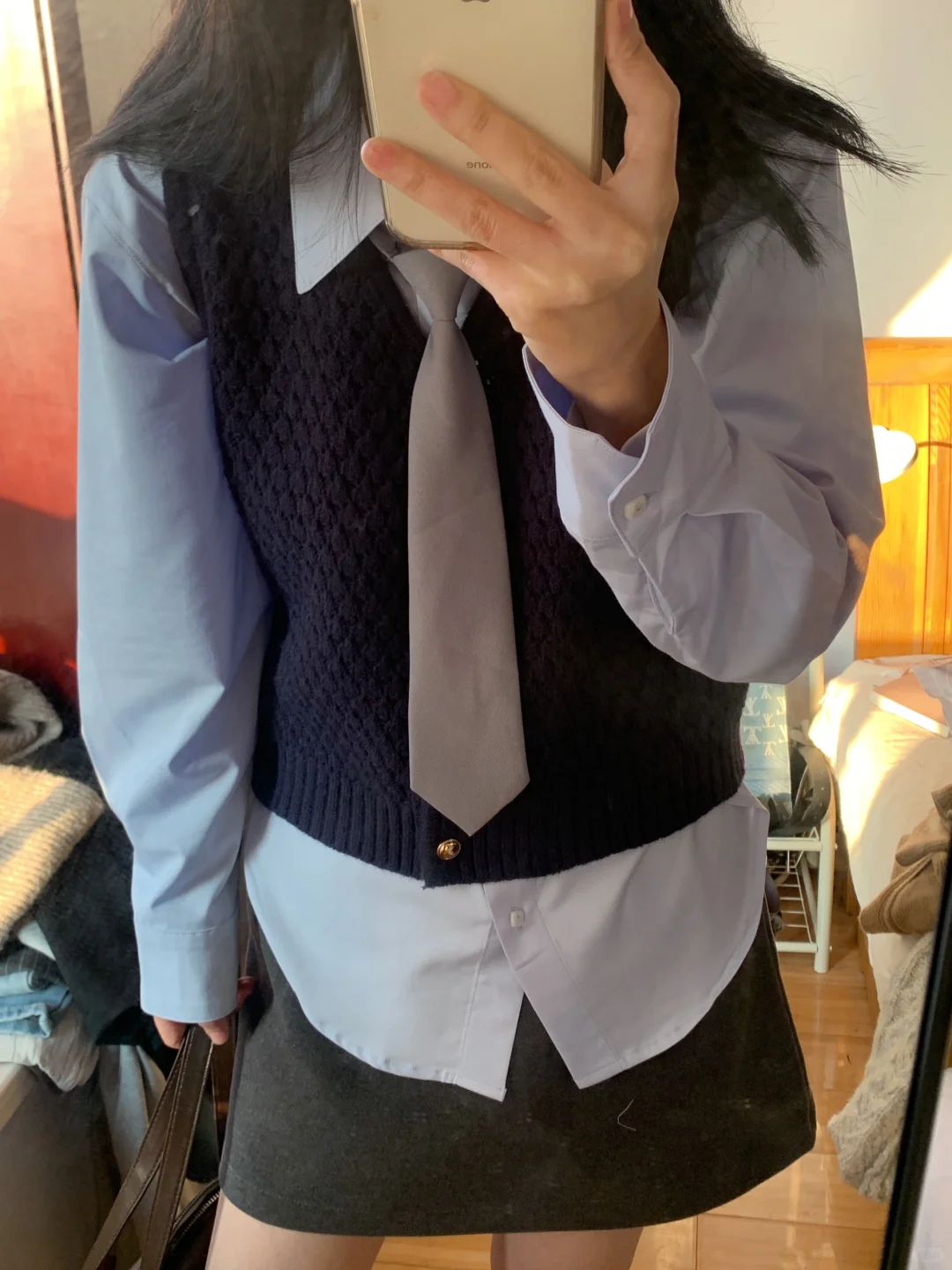绸缎蓝衬衫💙穿上感觉人好薄一片