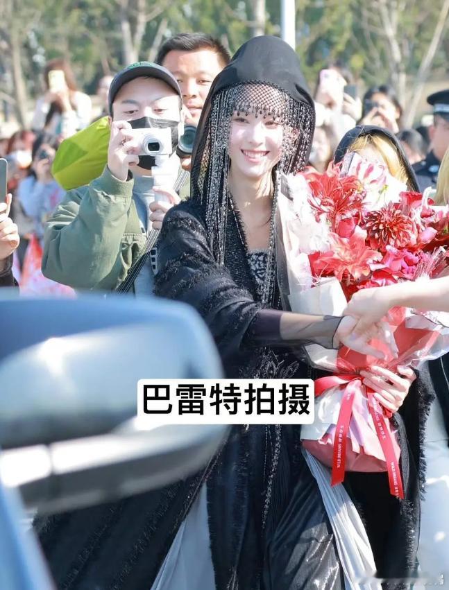 张天爱跟素人合影,胯真的好宽,大宅院似的