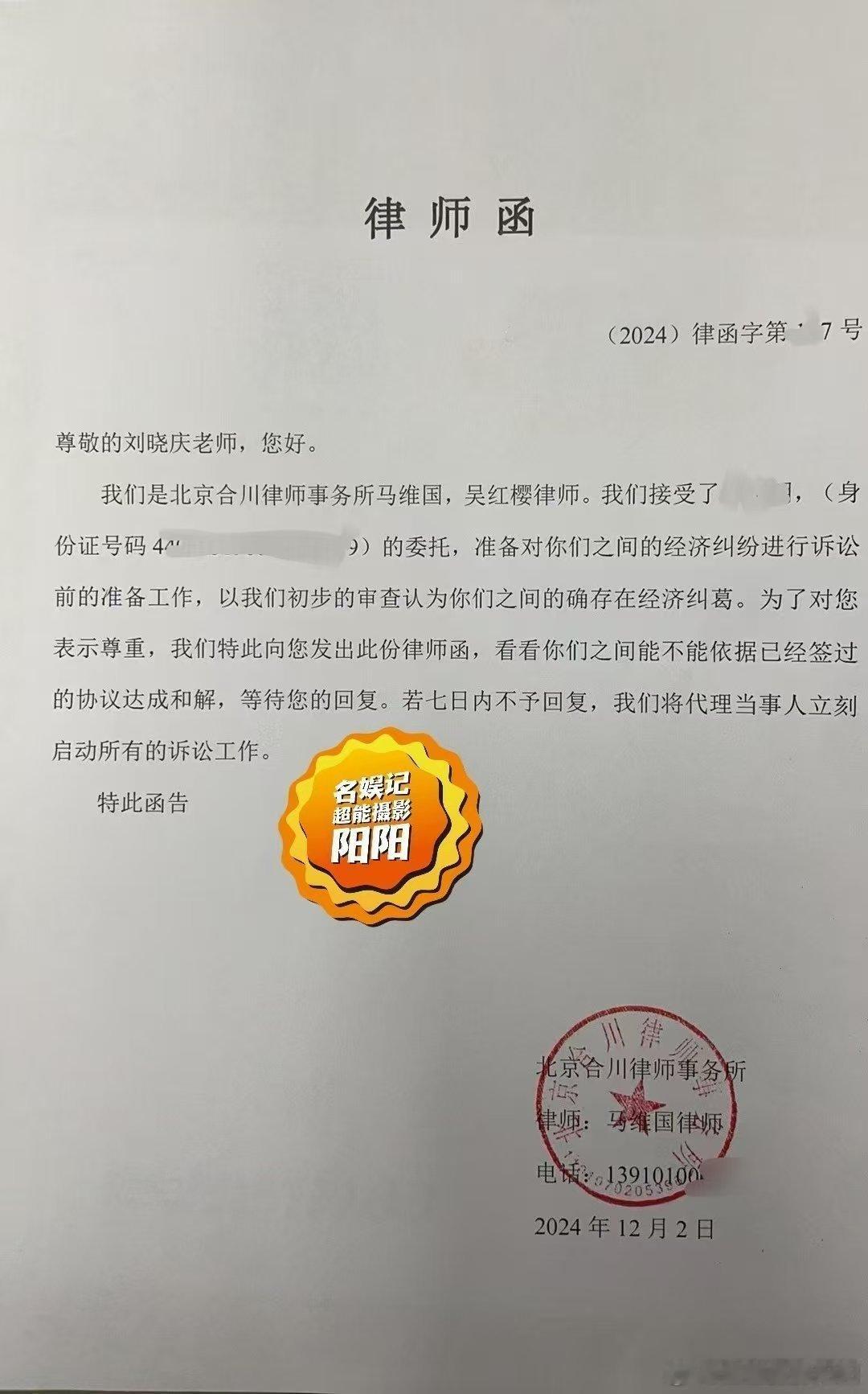 刘晓庆前男友发律师函讨债 前男友向刘晓庆讨债 狗仔曝刘晓庆前男友发律师函讨债,律师函中称古柯与刘晓庆之间确实存在经济纠葛,望刘晓庆与古柯依据已经签过的协议进行和解,若7日内不予答复,将立即启动诉讼工作。