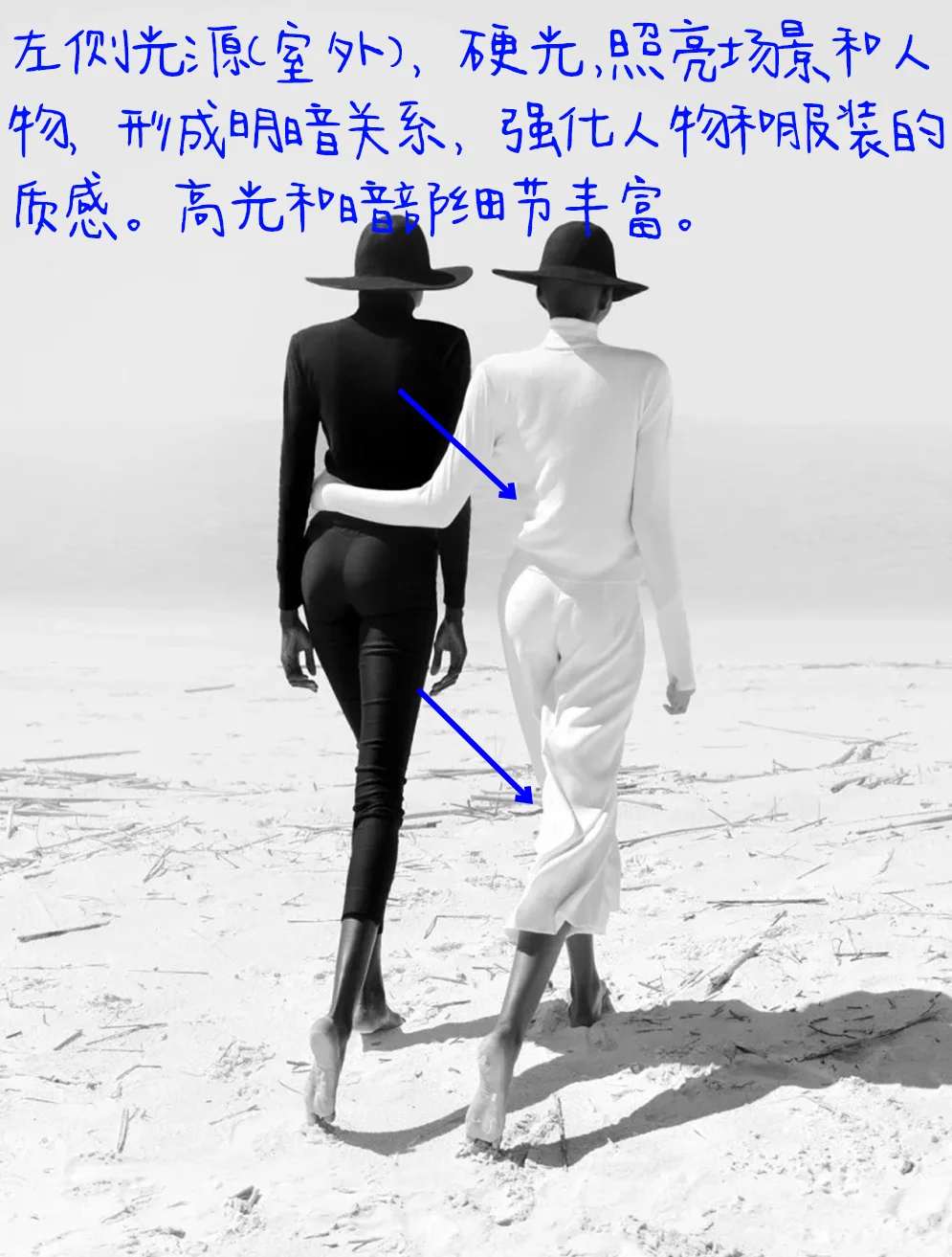 [二R].左侧光源(室外),硬光,照亮场景和人物,形成明暗关系,强化人物和服装的质感。高光和暗部细节丰富。