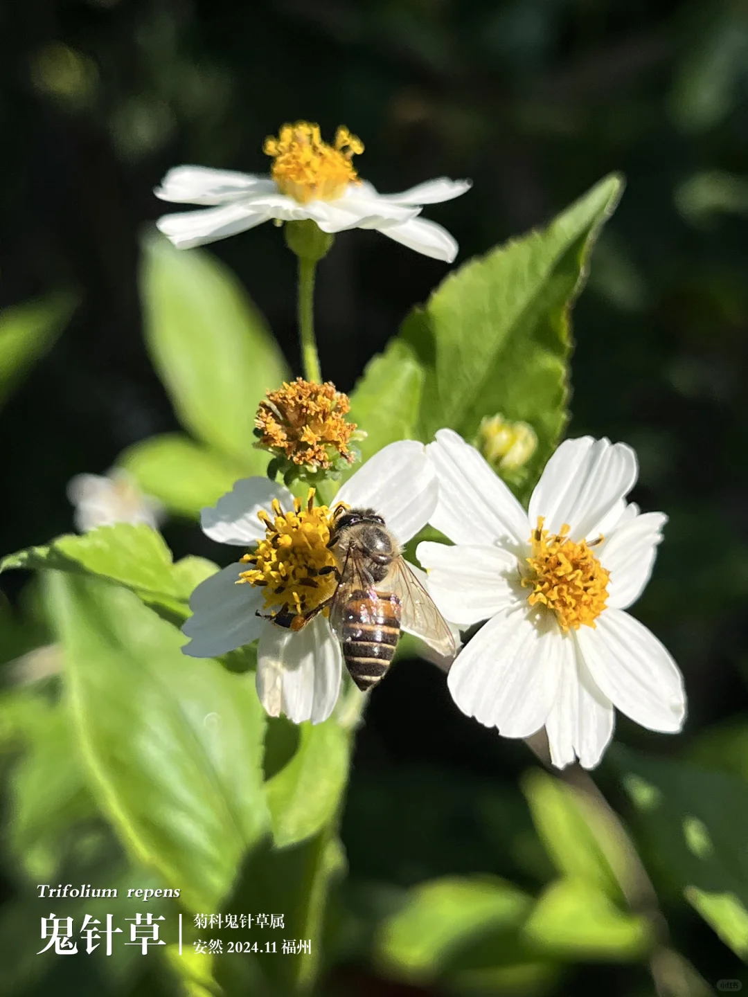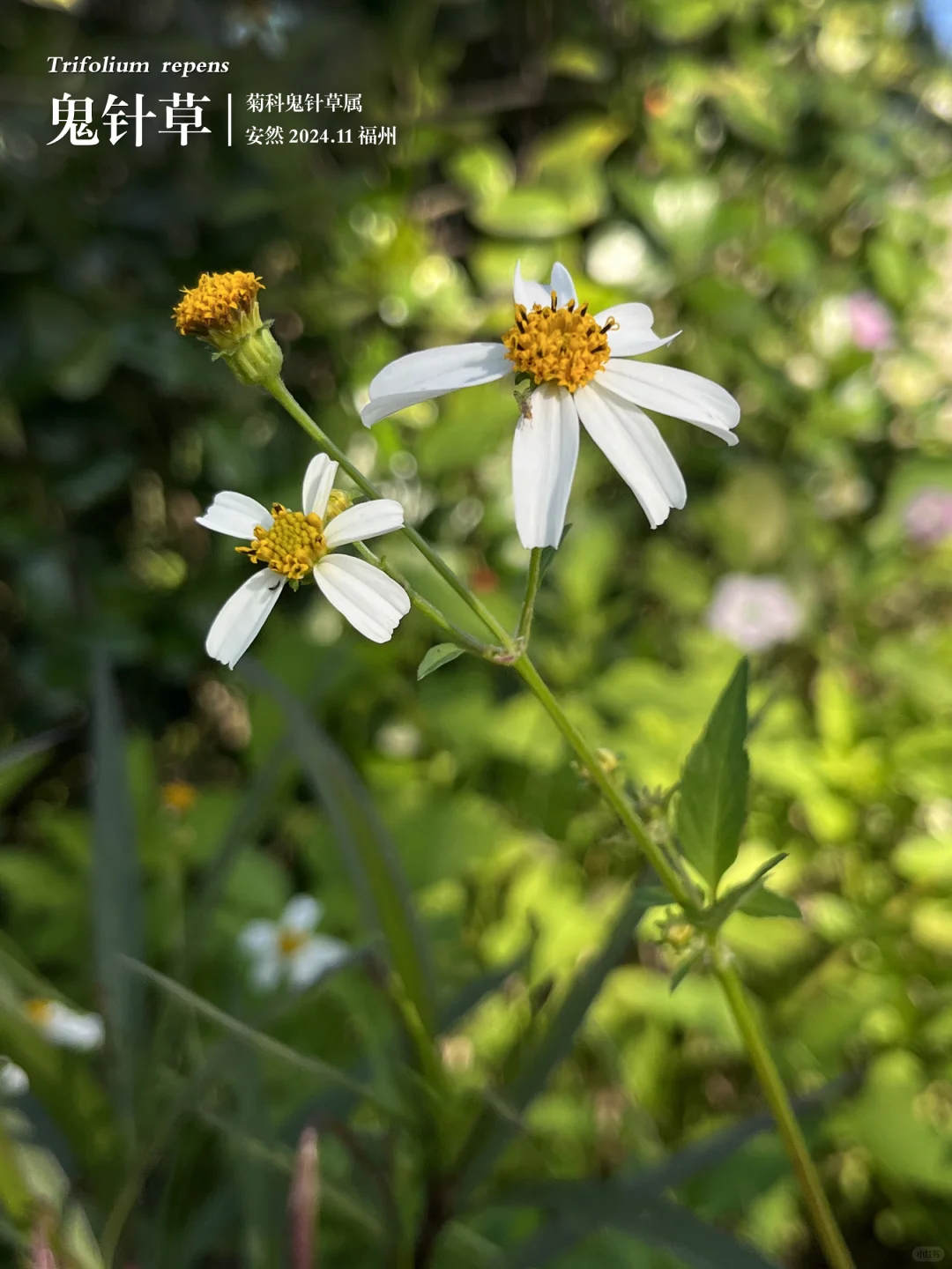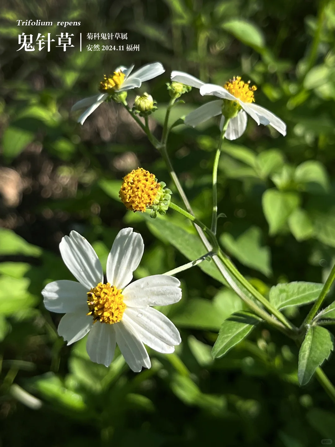鬼针草是菊科鬼针草属的一年生草本植物,它的花还挺好看的。