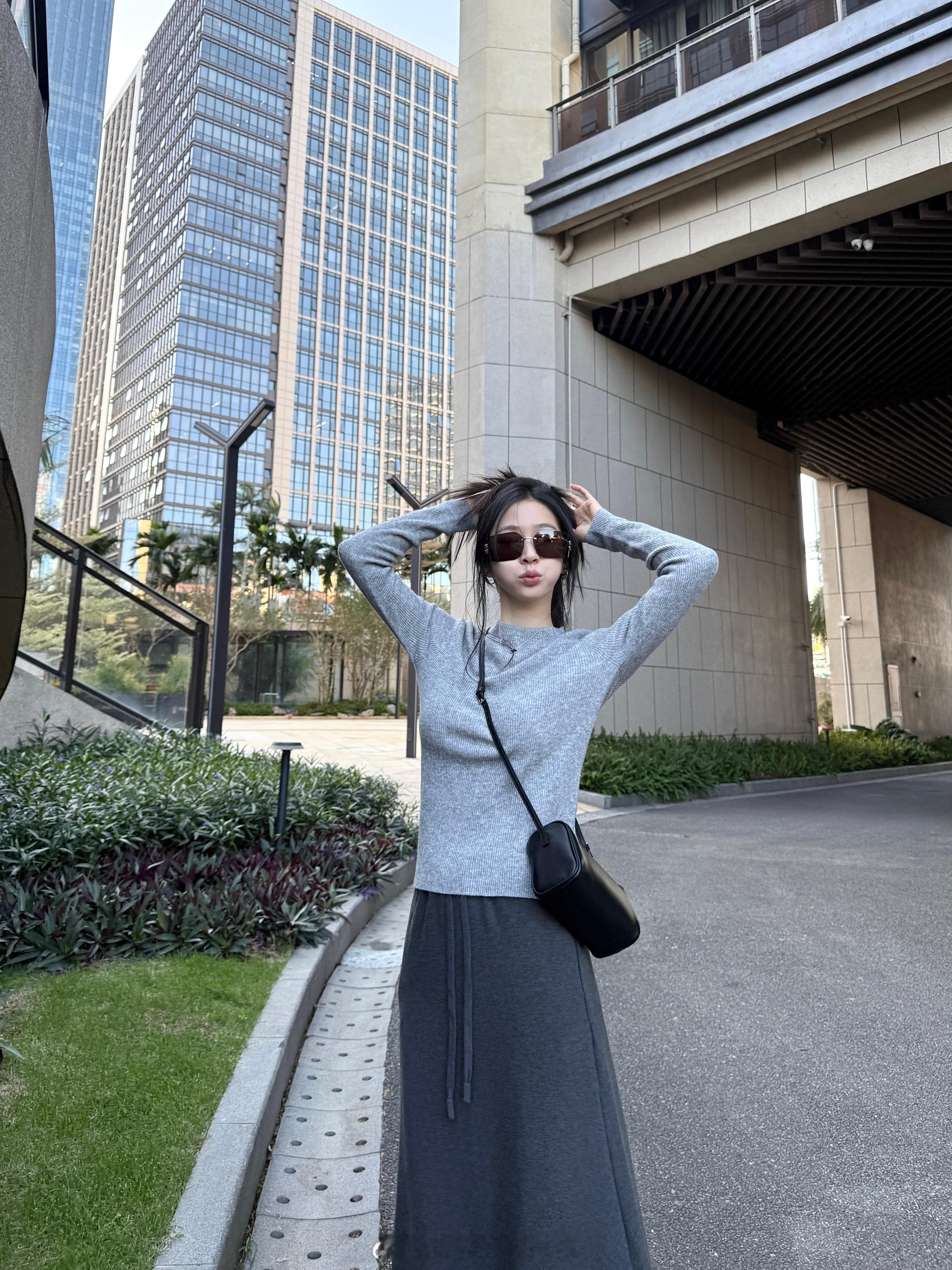 休闲又lady的小裙裙这条裙子用了细格特别的织法纹路特别好看 我特意还给你们配了