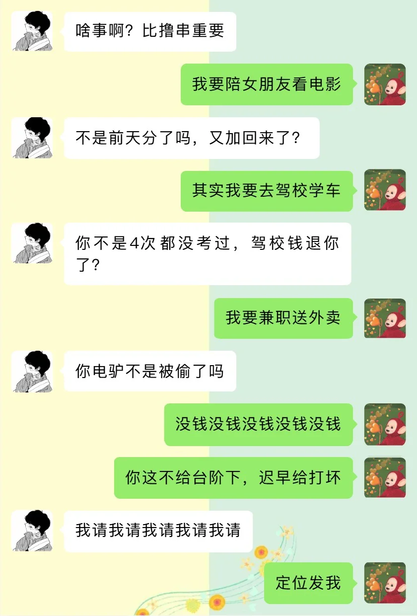 Ta一起来看 1.我用流量 2.考试稳了 3.你怎么知道是我? 4.全都能改 5.天生一对 6.台阶 7.全家一起 8.用魔法打败魔法 9.黄牛:你就说你上没上车吧 10.打字慢的好处 11.原因找到了 12.喝酒永动机 13.直男洗头 14.发家致富新途径 15.同学:你不早说? 16.意外惊喜