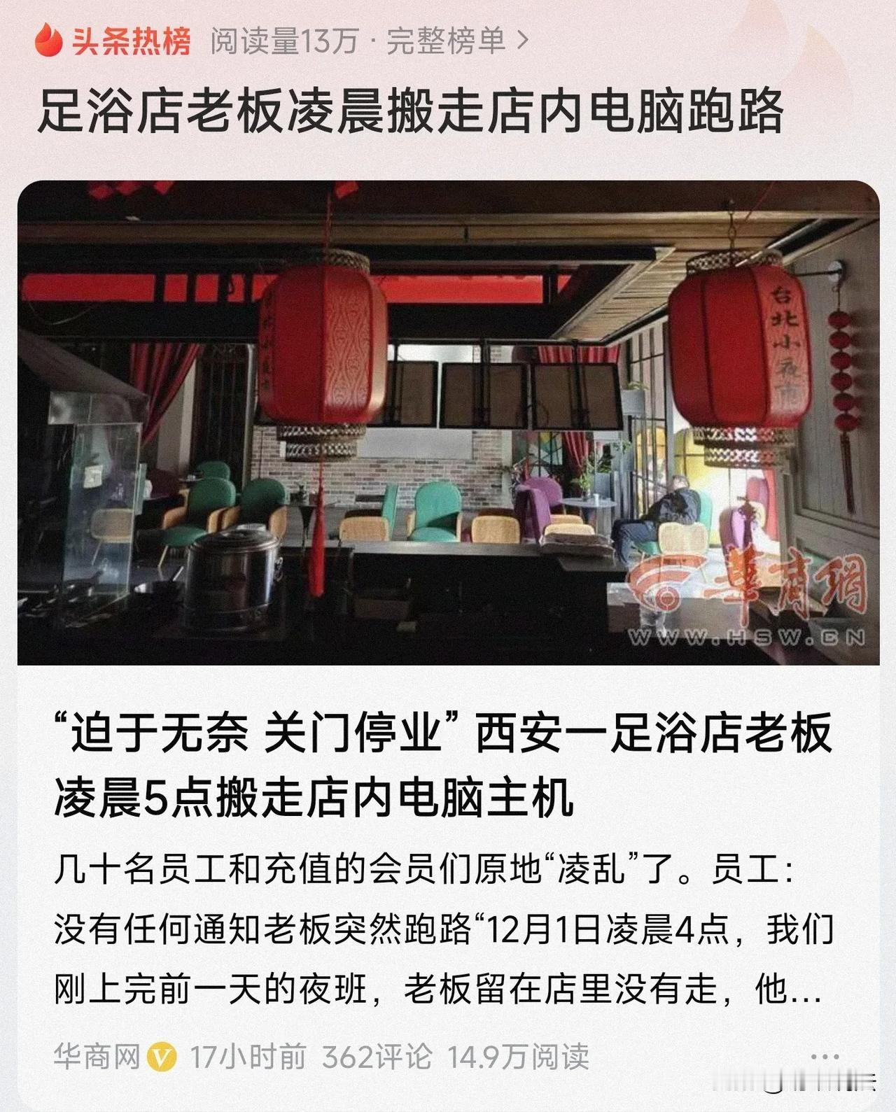 足浴店也扛不住了!陕西,某足浴店员工上完夜班后,看到足浴店老板还留在店里没有走,和老板打招呼。老板给他们打气,“好好上班,这个月生意会更好。”没想到,凌晨五点,老板就搬走电脑,连夜跑路。 (来源:华商网) 足浴店老板刘某坐在办公桌前,点燃了一根香烟,眼中满是疲惫。 他的足浴店位于西安市某街道,店里的员工很多,其中技师近30名,加上前台、主管、后勤等人员,有50人左右。 技师的工作没有底薪,全靠提成,好好干的话,一月工资能达一万元左右。 在外人面前,刘某风光无限,有着这么大的一家足浴店,不说赚得盆满钵满,至少也不是普通家庭可以比的。 刘某手中的计算器噼里啪啦地响个不停,身上透着一股说不出的疲惫。因经济大环境影响,店里经营举步维艰,2024年以来一直处于亏损状态。 看着计算器里的数字,刘某感到一阵无力,截至目前,他拖欠的房租、物业费、供货商货款及员工工资等费用已经高达200余万元。 刘某将烟掐灭后,内心做了一个决定,他要开始实施跑路计划了! 12月1日上午,刘某或者是内心过意不去,他发信息号集大家原地解散,和凌晨四点,员工们上完前一天的夜班,他鼓励大家“好好上班,明天是12月的开头,这个月生意会更好,要好好干!”迥然两样。 因为11月份的工资还没发,足浴店的员工表示,我们不能就这样离开了,技师们近两日更是守在店里,希望可以等到刘某出现。 其中一位技师提供的证据显示,刘某的足浴店11月一个月,创收合计65万余元,技师提成合计20万余元。 1、刘某把问题想得太简单了,关门跑路是行不通的。 《劳动合同法》第85条规定,未按照劳动合同的约定或者国家规定,及时足额支付劳动者劳动报酬的,由劳动行政部门责令限期支付劳动报酬、加班费或者经济补偿。 针对拖欠工资的情况,技师们可以向劳动行政部门投诉,让劳动行政部门帮忙索要工资。 目前,足浴店的技师们正向西安某区解决拖欠农民工工资联合办公室递交材料,希望相关部门介入能联系到刘某协调给工资。 2、刑法规定了的拒不支付劳动报酬罪。 本罪是指以转移财产、逃匿等方法逃避支付劳动者的劳动报酬,或者有能力支付而不支付劳动者的劳动报酬,数额较大,且经政府有关部门责令支付仍不支付的行为。 如果刘某是有钱不支付技师的工资,或者把钱转移、隐匿了,他这事就不是拖欠工资的问题,而是已经涉嫌刑事犯罪。 《刑法》第276条规定,拒不支付劳动报酬的,处3年以下有期徒刑或者拘役,并处或者单处罚金;造成严重后果的,处3-7年有期徒刑,并处罚金。 不知道是良心发现,刘某在告知大家足浴店迫于无奈关门停业时,说了这么一句: “大家的工资等核算好了,自己就是砸锅卖铁也会想办法分期陆续发给大家。对不住大家了!” 3、有网友说,“一个月收入65万多,工资20万、就算你房租水电乱七八糟的成本30万、也不可能亏本啊,肯定是挪用钱去干其他的干亏了!” 也有网友说,“我家附近那个,三年没啥客人都坚持过来了。我充值的会员还在,就是技师换了几波了,质量变差了。” 最后,现在公司老板关门跑路的事情,已经不是个例了,恶劣非常影响,希望有关部门加大对拖欠工资行为的惩戒力度,坚决追究其刑事责任! 对此,您怎么看? 关注@蚂蚁说法 足浴店老板凌晨搬走店内电脑跑路 关注时事新闻和法律