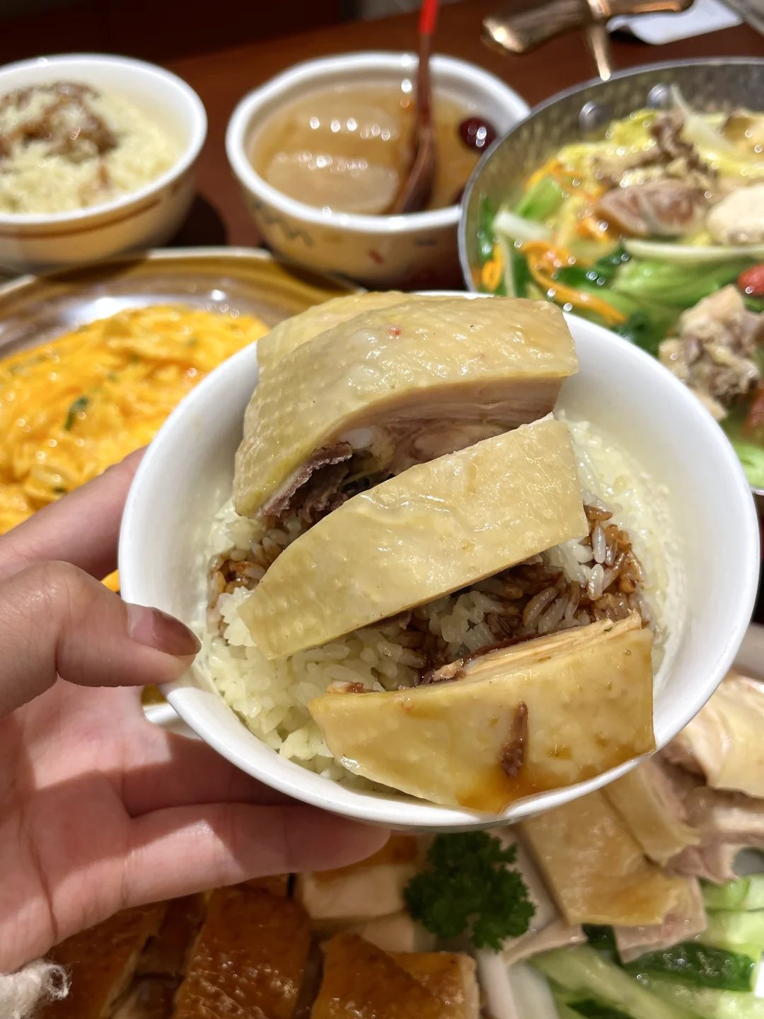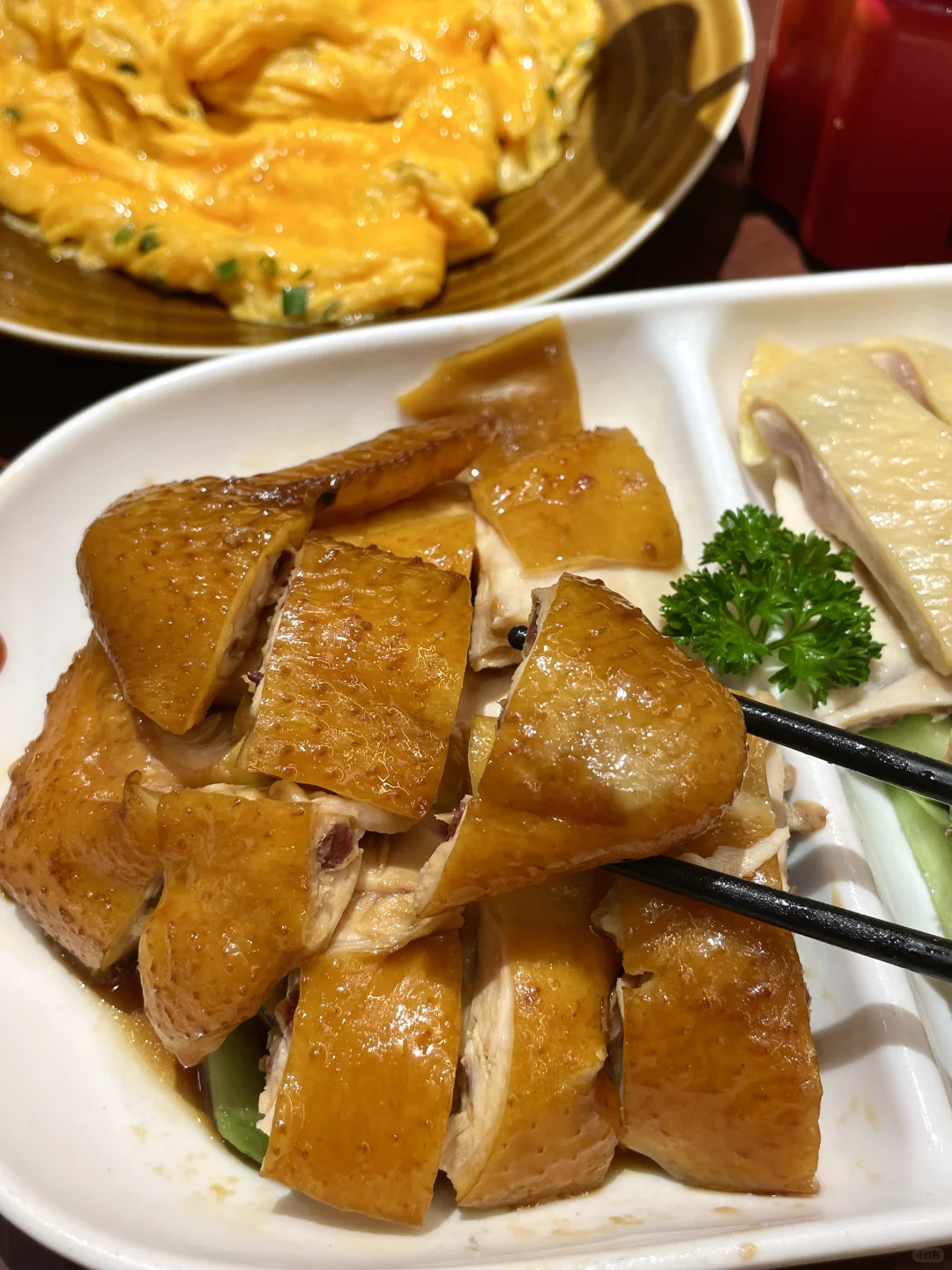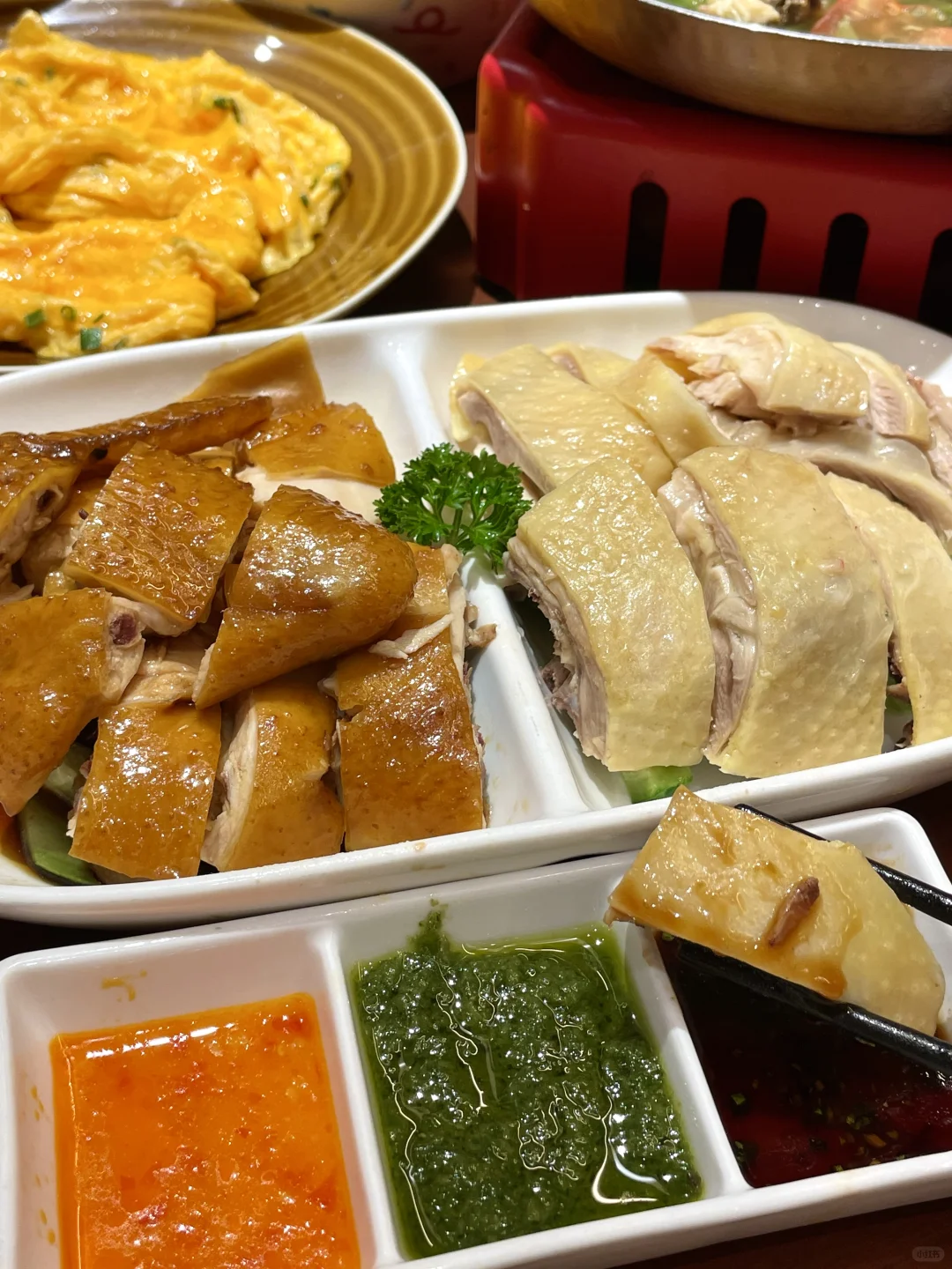真的太爱了😭我蕞爱的海南鸡饭搭配粤式小炒!超适合i人来吃的! 油白双拼✔️白切鸡鲜嫩滑!油鸡很香很入味 鸡油饭✔️谁家小孩不爱啊!满满的鸡有香味,一点都不咸!太好吃了! 还有蔬菜鸡汤,好鲜好健康喝下去暖暖的!