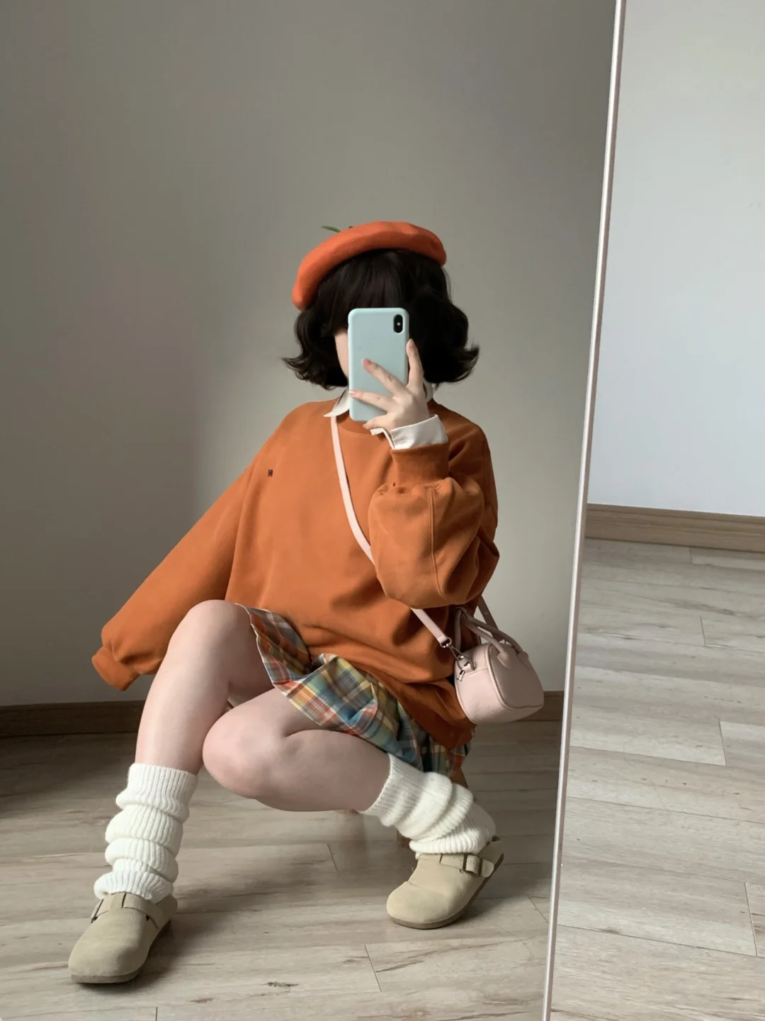 记录吧就现在 微胖穿搭 可爱穿搭 甜妹穿搭 穿点颜色在身上 元气穿搭 给秋冬来点颜色瞧瞧 橘色卫衣 卫衣