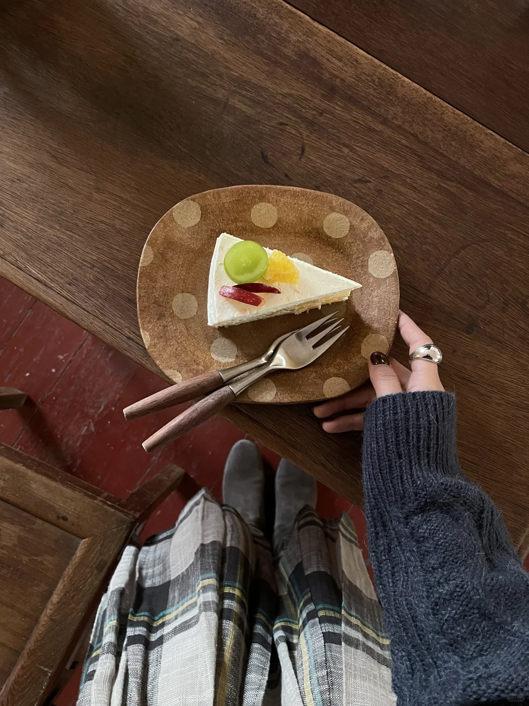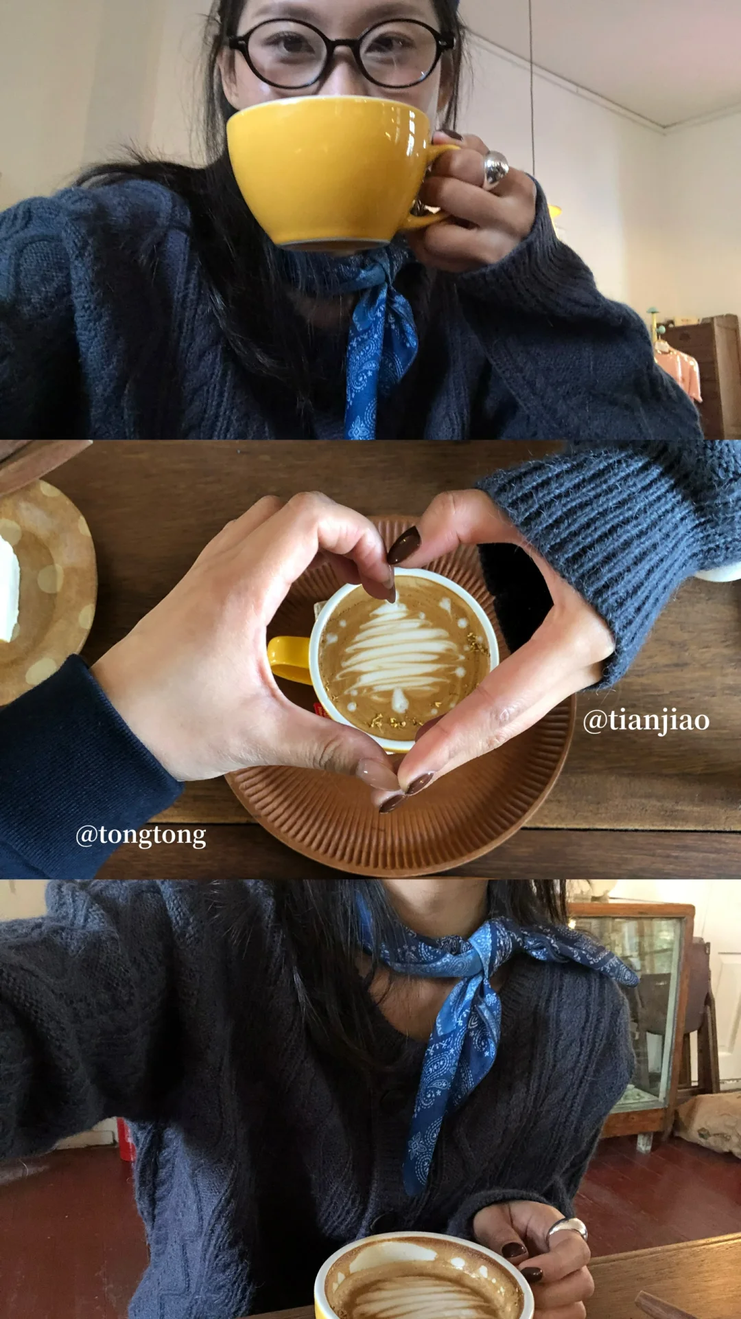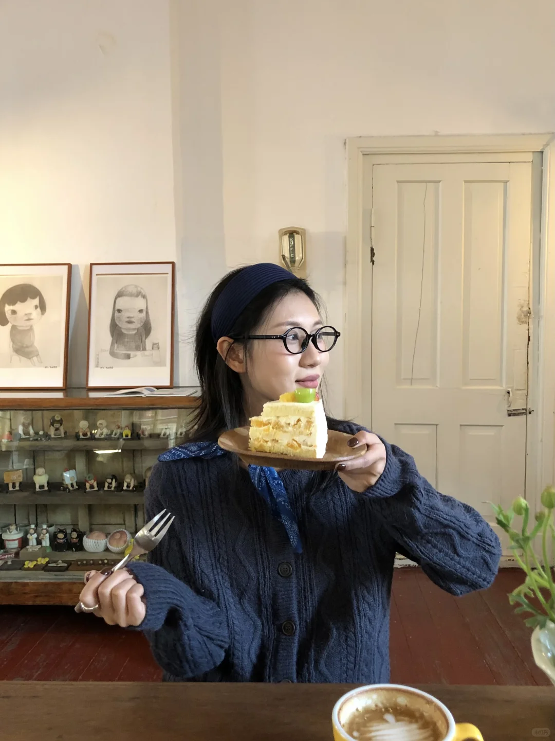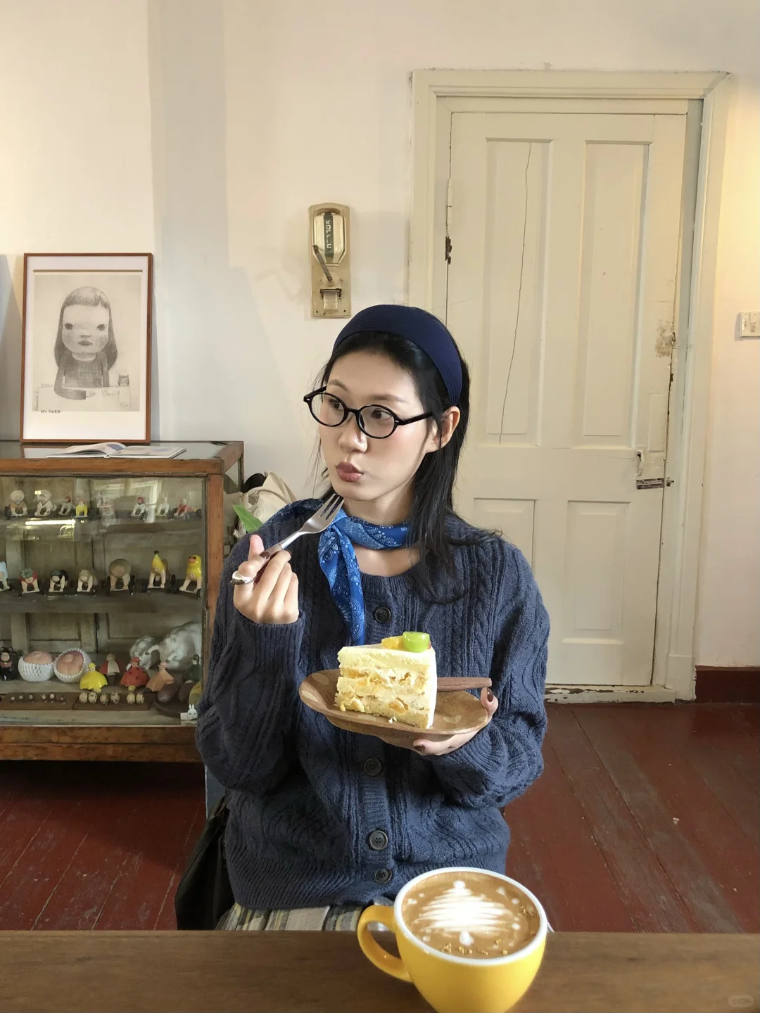 又喝上小熊拿铁啦 这次还有圣诞拉花🎄.:*🛷° 香橙蛋糕也hin好吃 -
