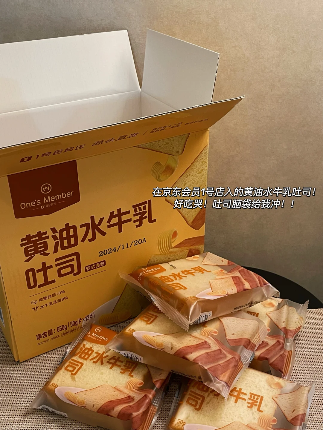 · 起床空腹4h恰个从京东会员1号店入的黄油水牛乳吐司[萌萌哒R]配料干净成分健康 黄油含量≥10% 水牛乳含量≥8%!一箱整整650g到手才30r左右[哇R]在京东输“一号店优惠购”这种好吃又划蒜的面包有好多 每周四-周六有会员直降 还不过两天1号又能领299减30的券一起用!!