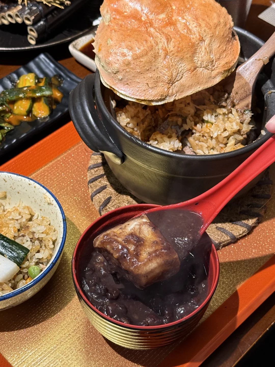 我宣布!这家店列入我的冬日必去清单😆 热呼呼的松叶蟹肉釜饭🫕 糯叽叽的年糕红豆汤🫘 还有烤的滋啦啦的炭火烤肉🍖 冬天来一次简直暖和整颗胃…