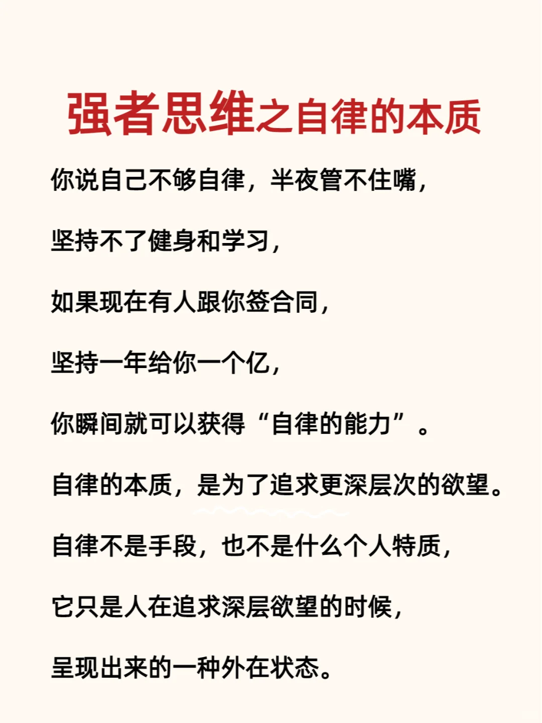 不自律的人,仅仅是因为他对更大的欲望,一无所知。