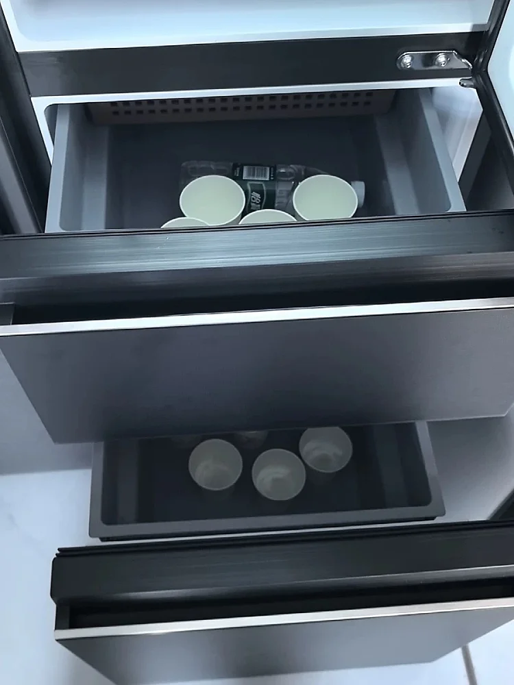 🔍下方有两个独立的大抽屉:中间是51L独立四档变温空间,熟食、零度保鲜、母婴、珍品,呵护家人的每一份喜好;最下面的抽屉能冷藏冷冻灵活切换:全宽幅变温实现花样食材存储不愁。