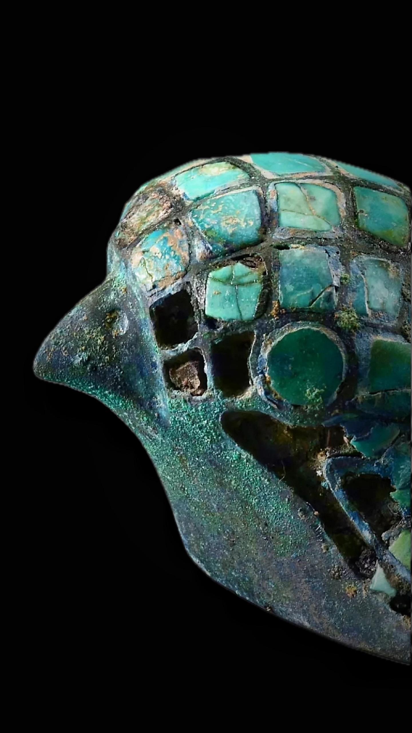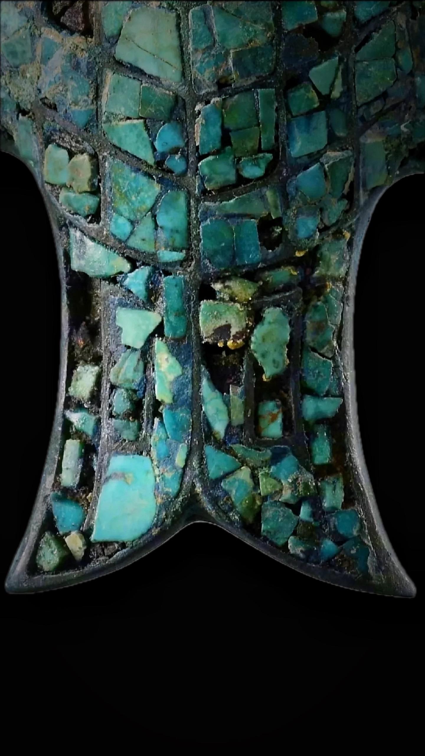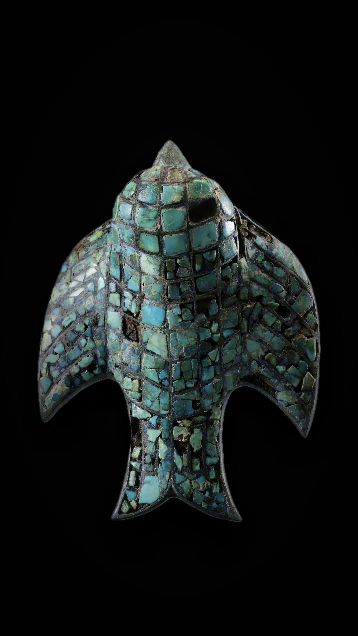 商代·嵌松石鸟形铜泡。天命玄鸟,降而生商,宅殷土芒芒