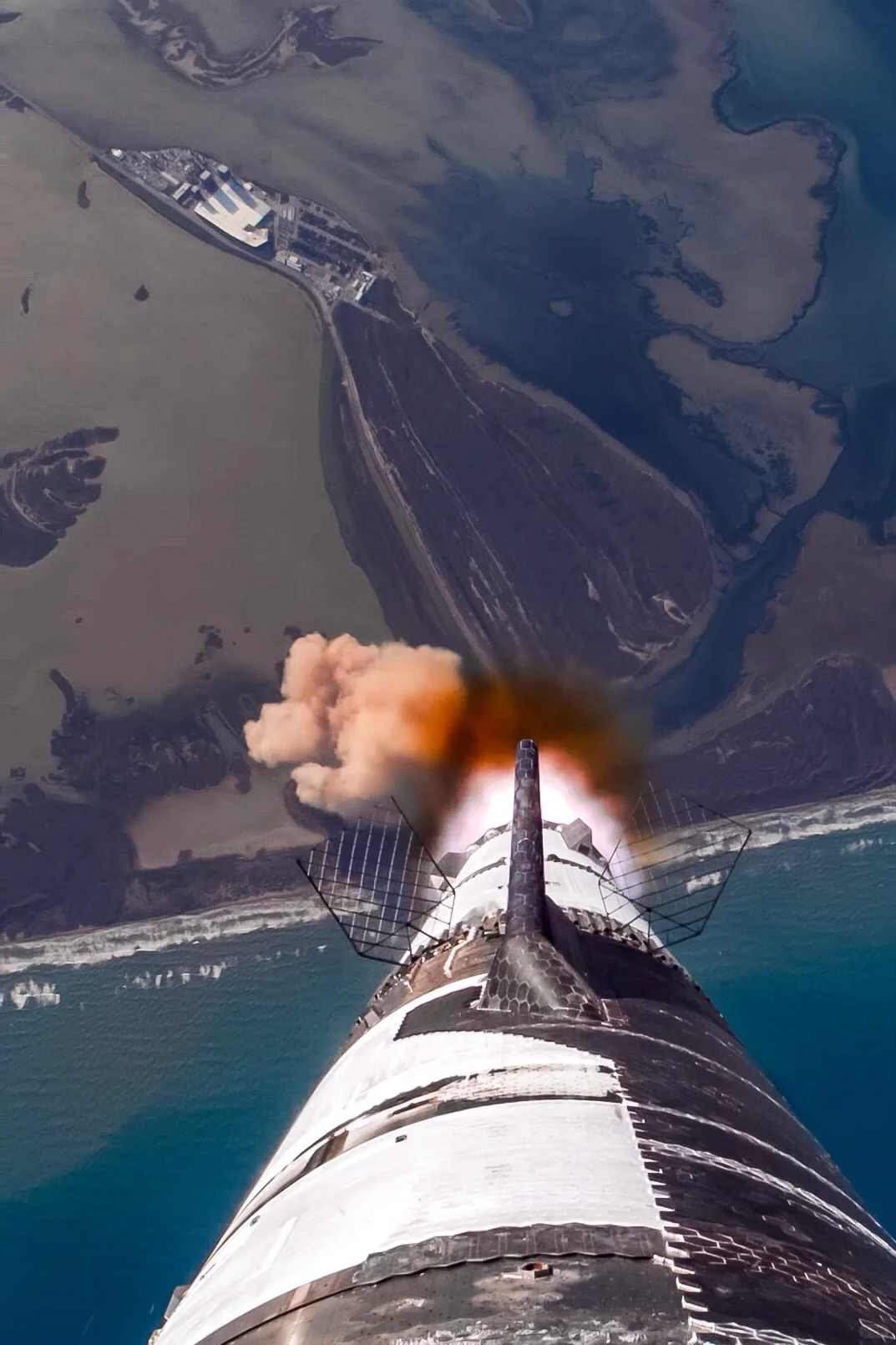 星舰从星际基地发射升空进行第六次飞行测试后的景象