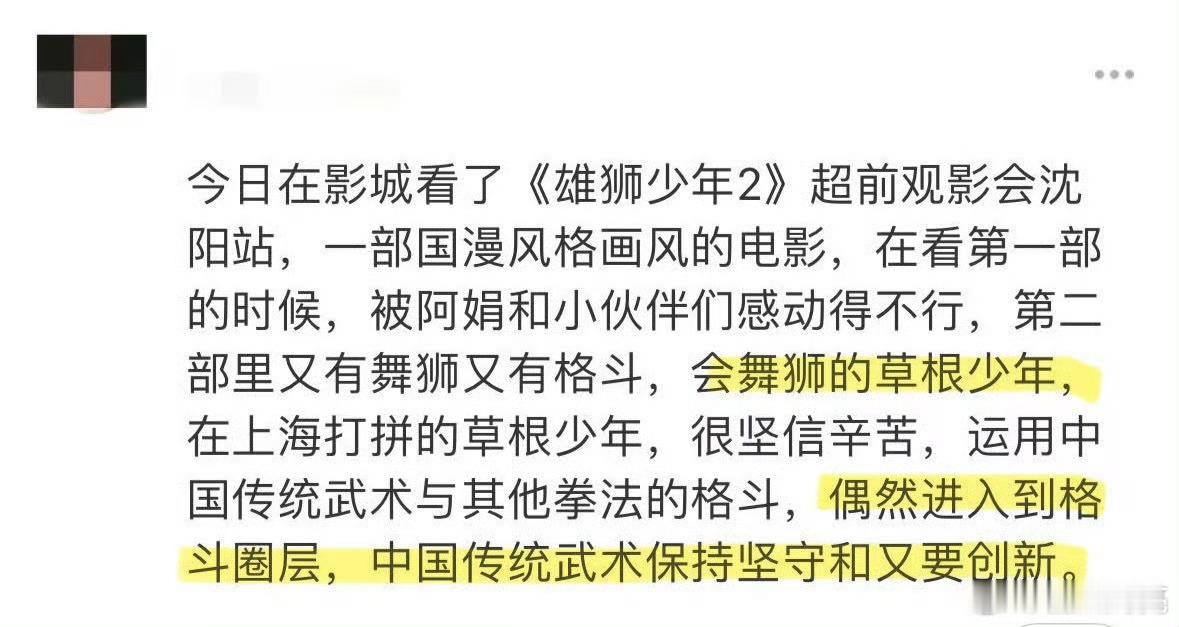 在国漫里看到扑面而来的生命力 omg雄狮少年第二部的画面依旧能感受到很强的迸发着的生命力,在新故事里开始尝试武术的阿娟,依旧像野草一样蓬勃,最重要的是看画面感觉制作水准又又又nextlevel了,好电影就应该在大银幕一睹为快,坐等!![拳头][拳头]