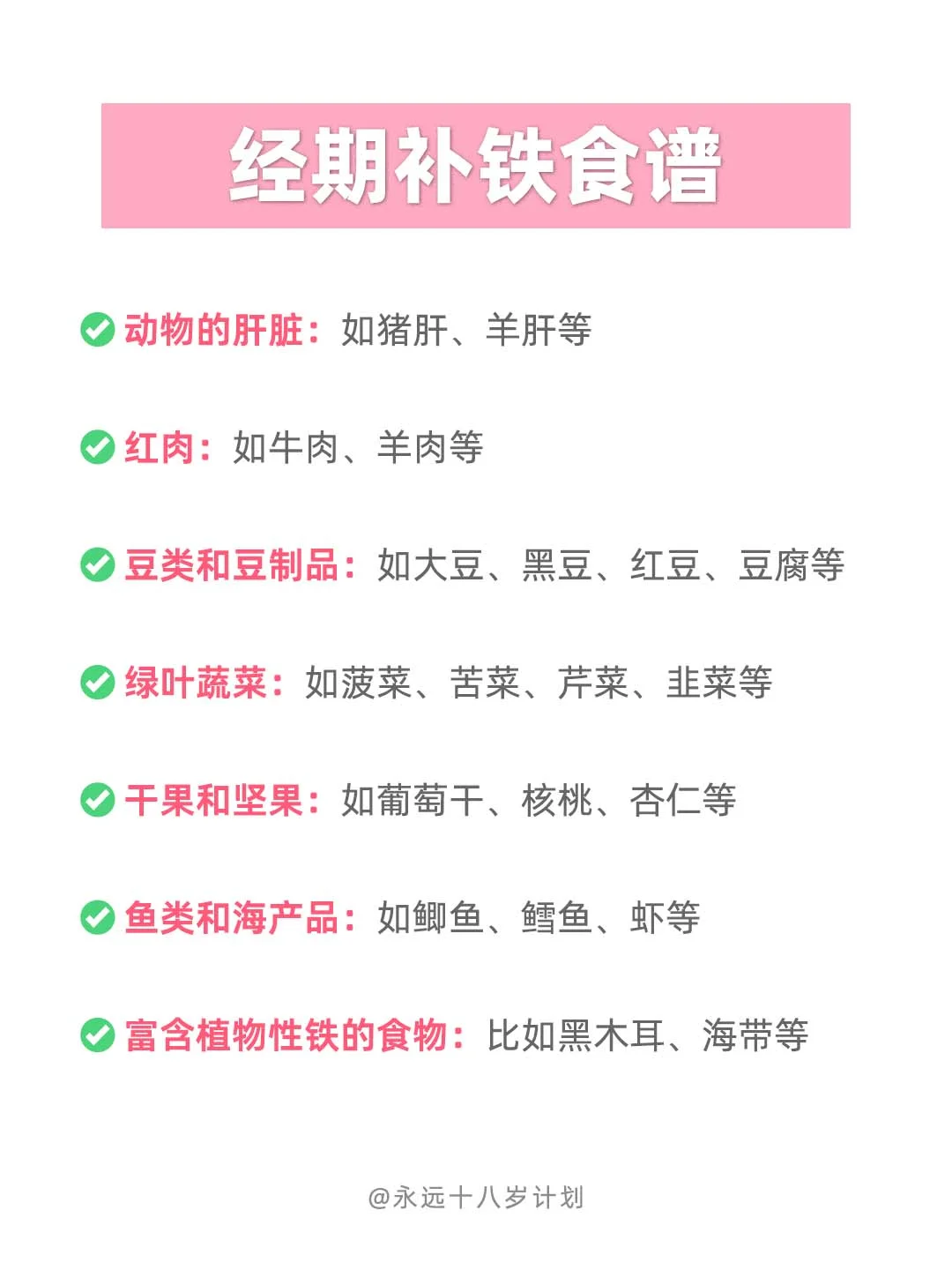 如果经期感觉身体不舒服了,也不要强迫自己过度学习/工作,这时候很可能“事倍功半”哦,多吃点补铁的食物给自己充充电吧~