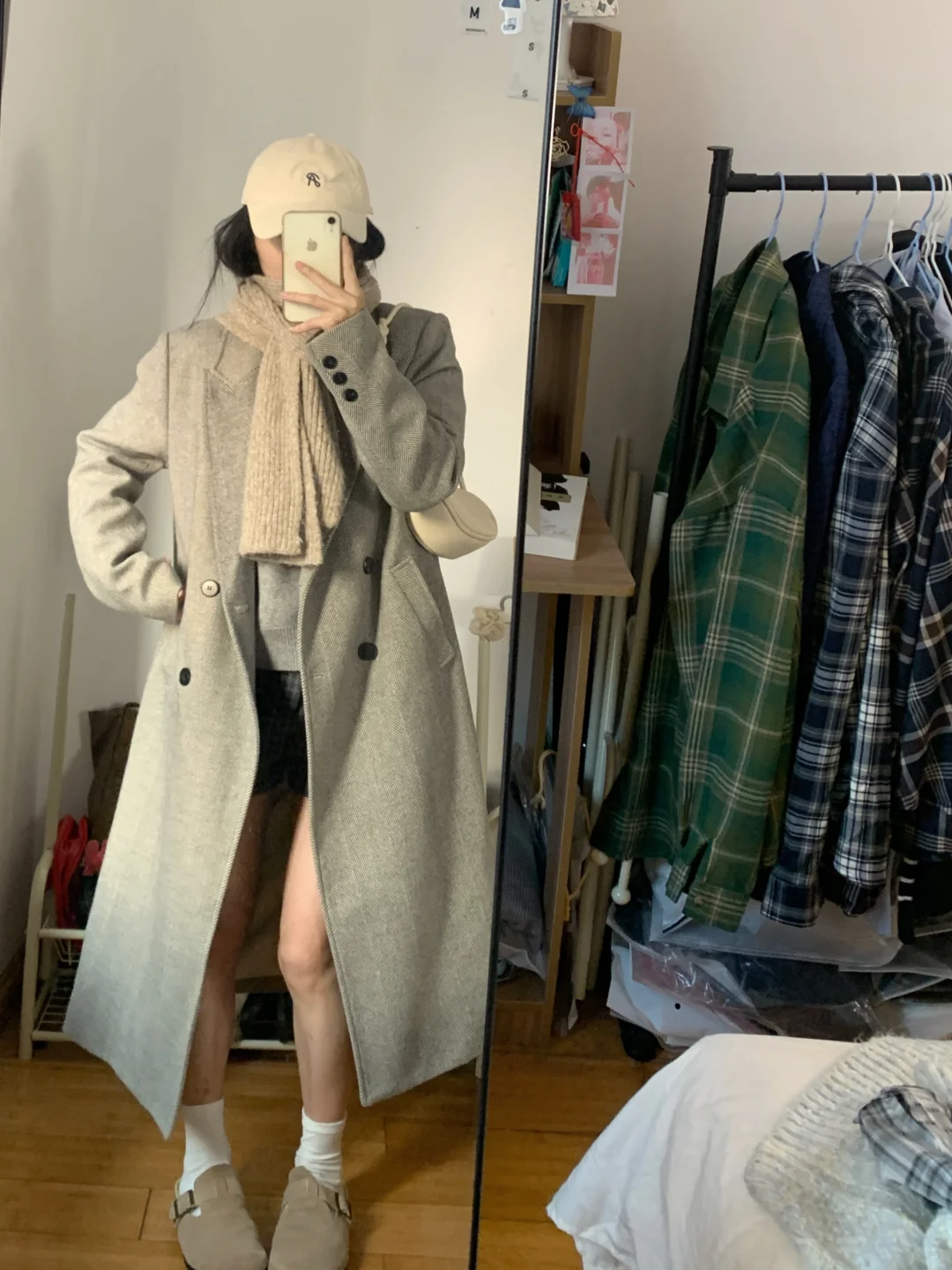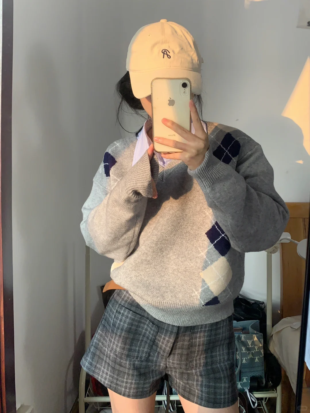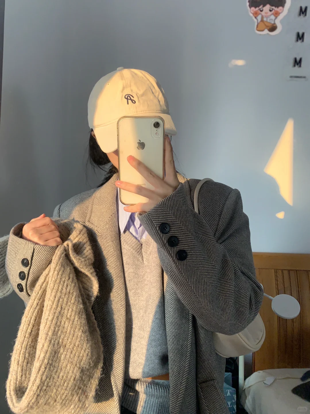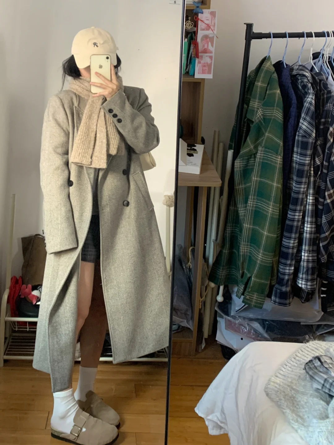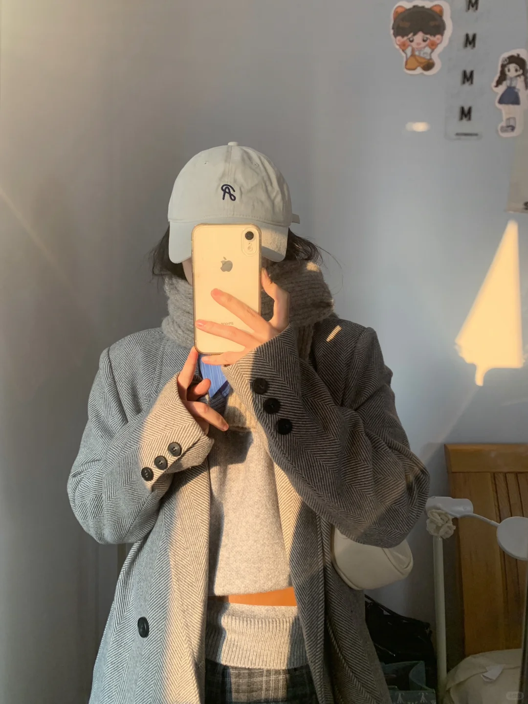 同色系的一身,搭配格子裤好看!出去的话套上光腿神器,不要太适合啦!!