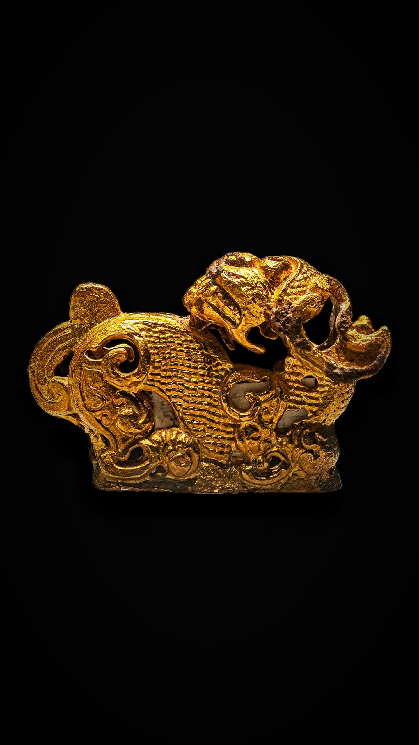 战国·镂空回首金虎。矫矫虎臣,在泮pàn献馘guó——先秦《诗经·鲁颂·泮水》