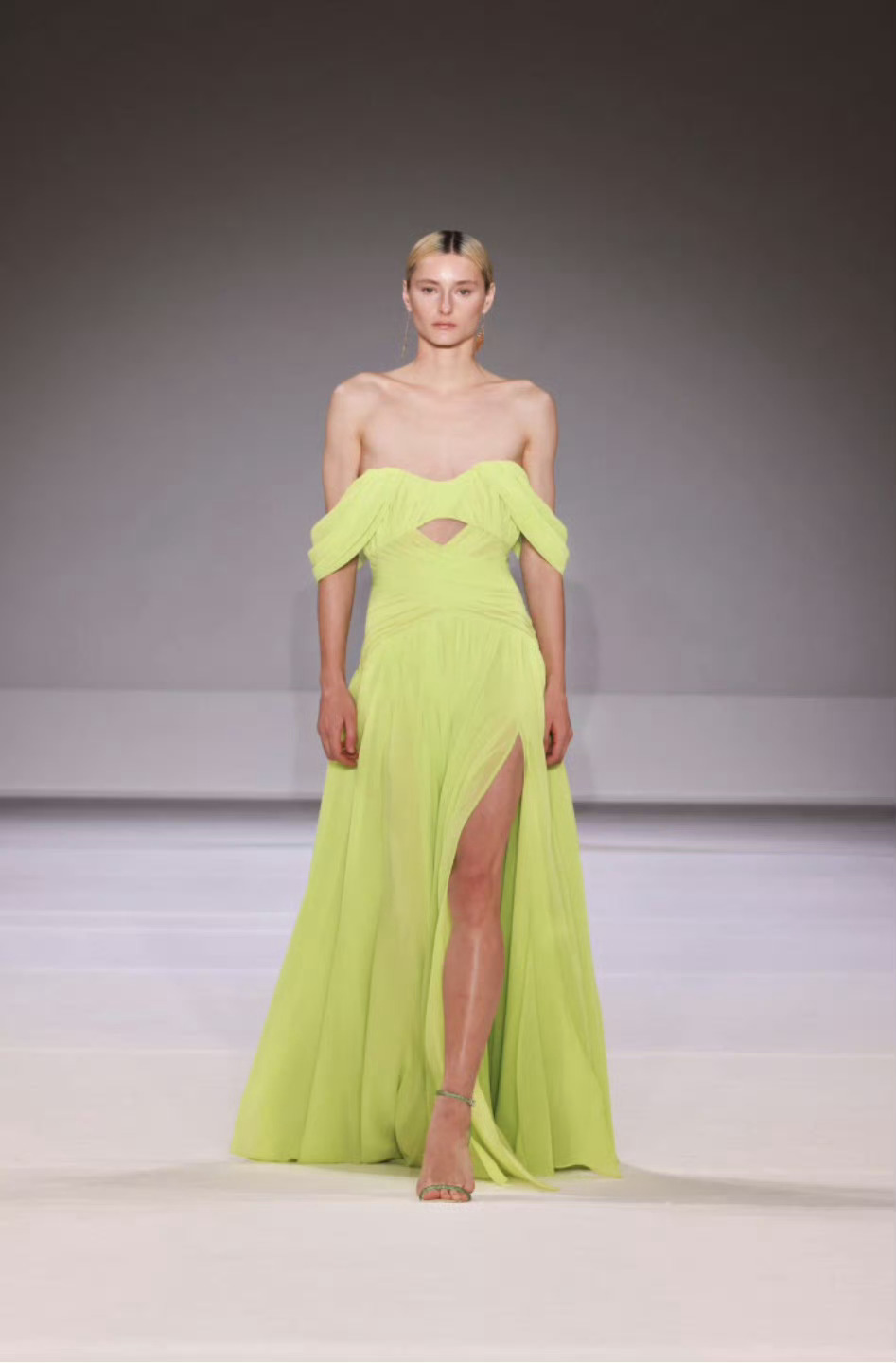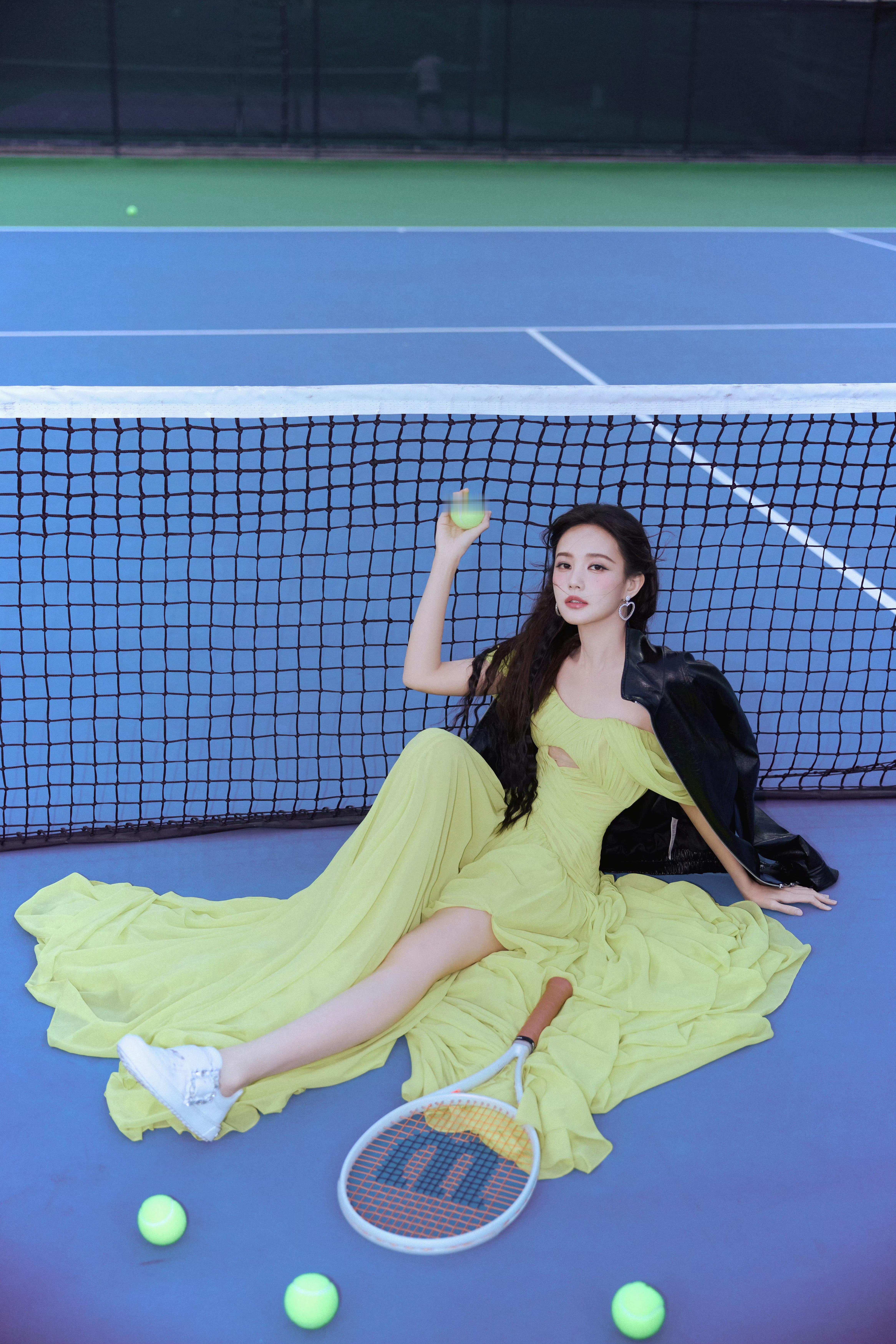 活力四射的绿色纱裙,配上酷帅的皮衣,她的球你准备接好了吗?